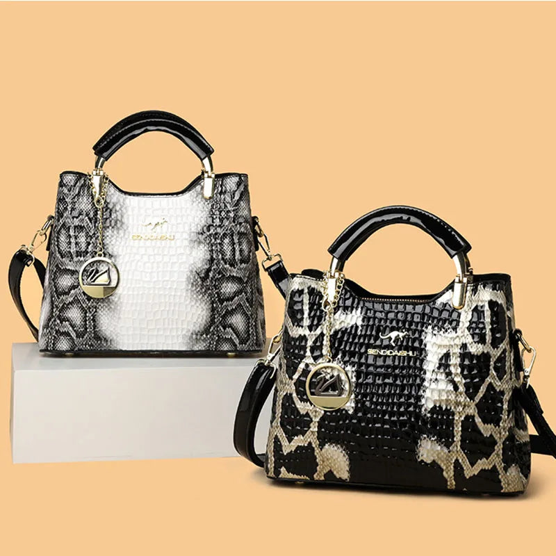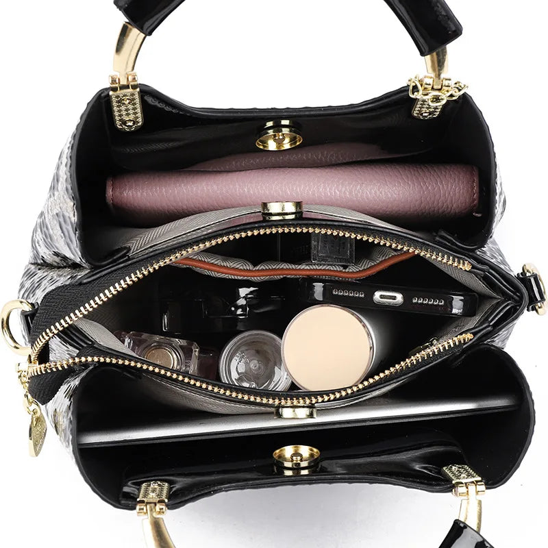 Female Tote Handbags Portable Crocodile Pattern Crossbody Bags Commuting Leather Satchel Fashion Business Women's Shoulder Bag