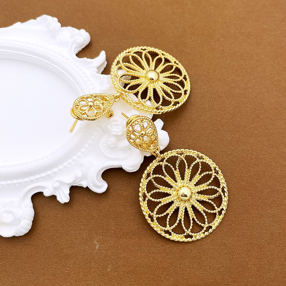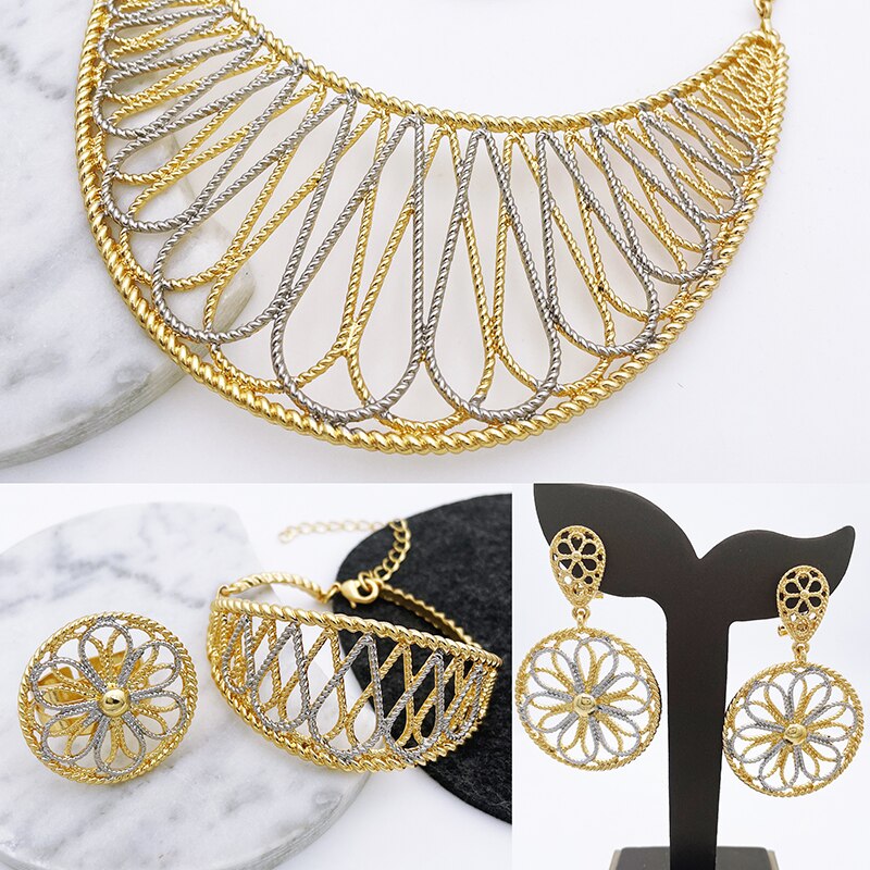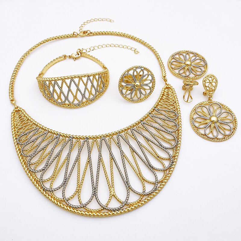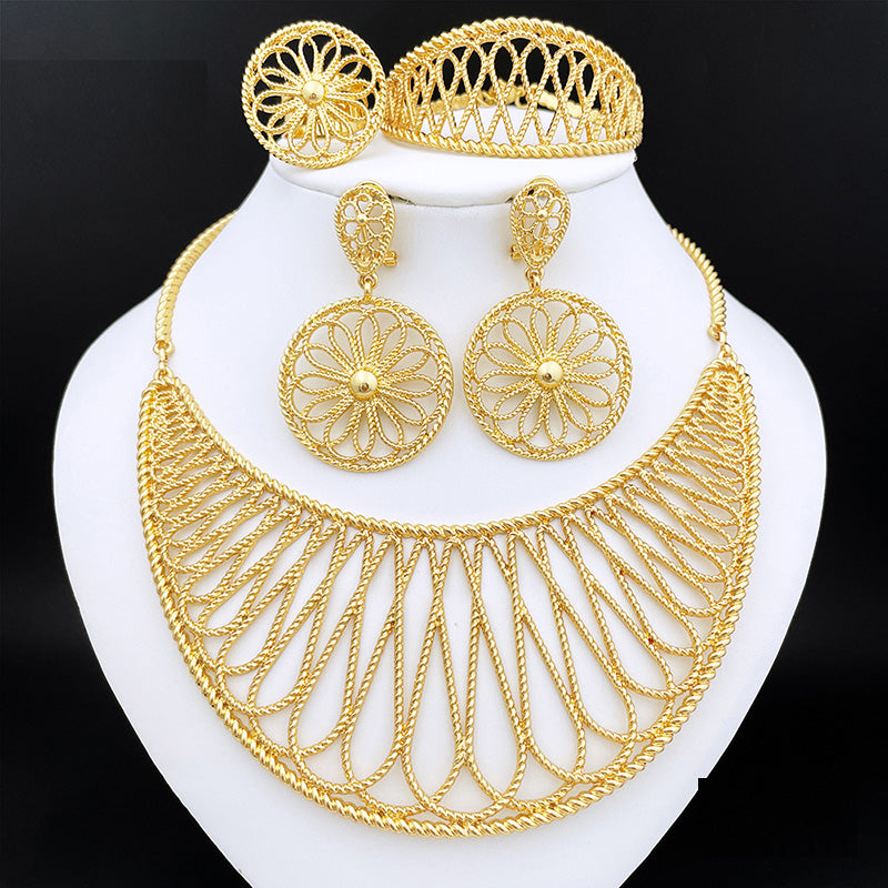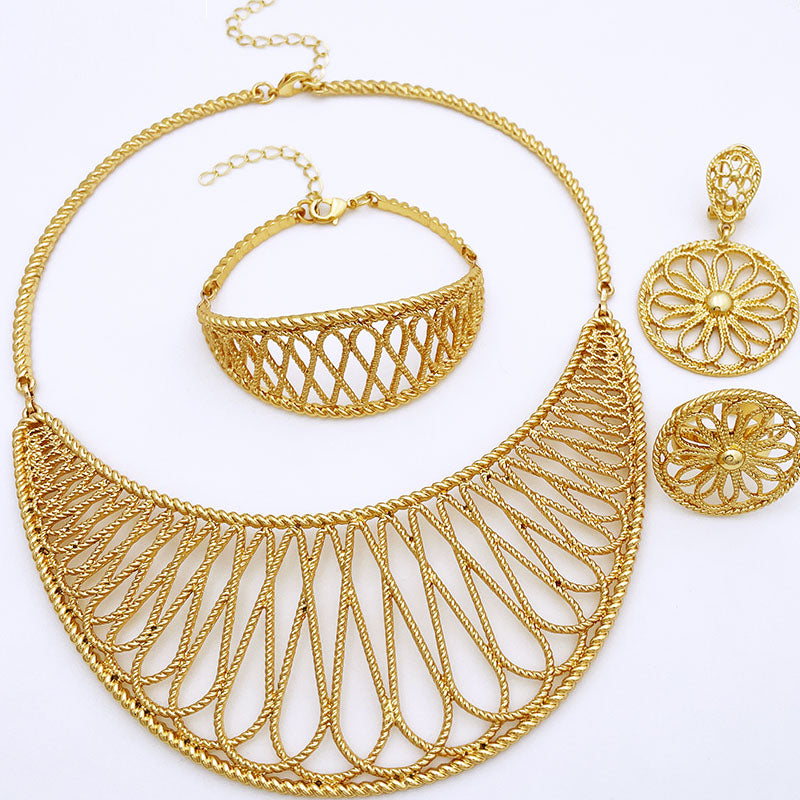African Gold Color Jewelry Set Women Large size Earrings and Necklaces Charm Bracelet Free Shipping Wedding Party Banquet Jewelry