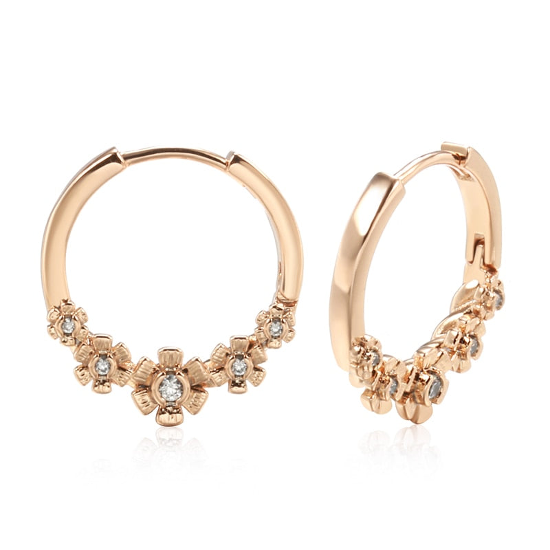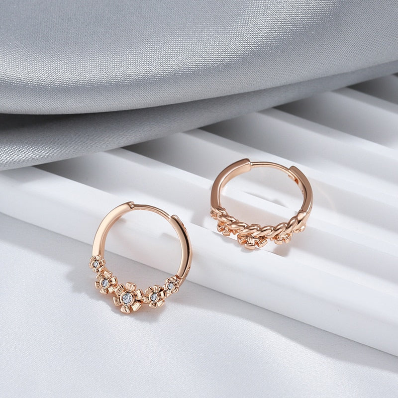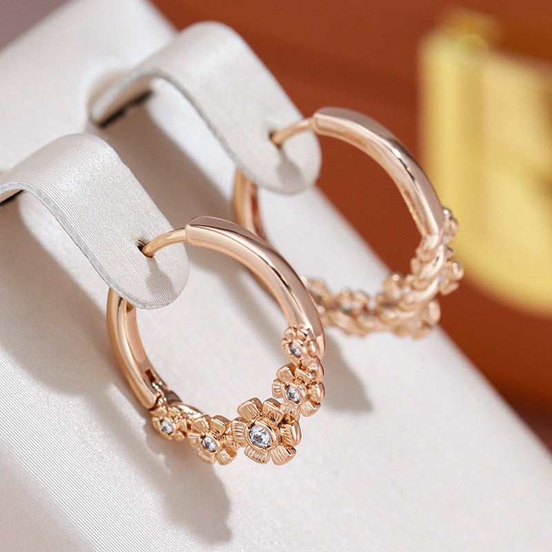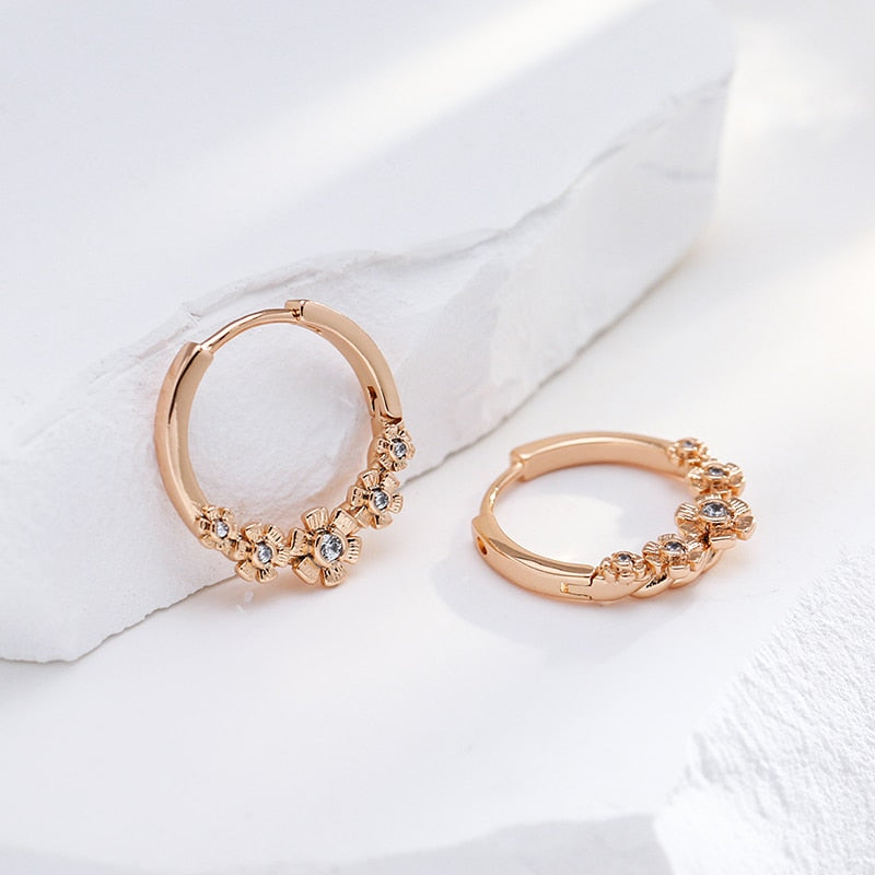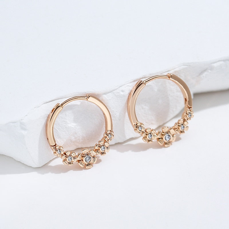 585 Gold Jewelry-Flower Design Slender 585 Gold Color Hoop Earrings for Women Trendy Party Jewelry Wedding Wear Dangle Accessories