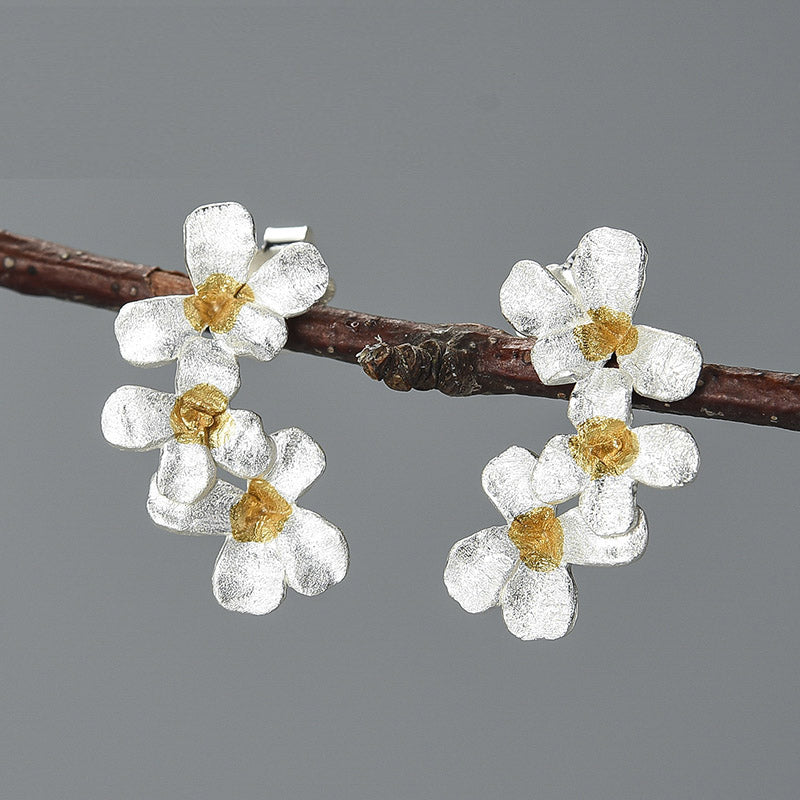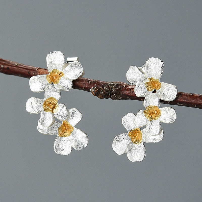 Fashion Earrings- Flower in my Garden Stud Earrings New Arrival Real 925 Sterling Silver Handmade Fine Jewelry Earrings for Women