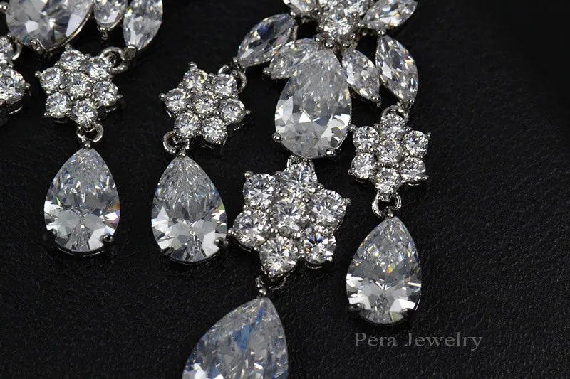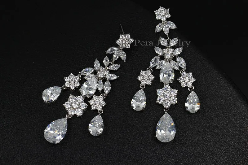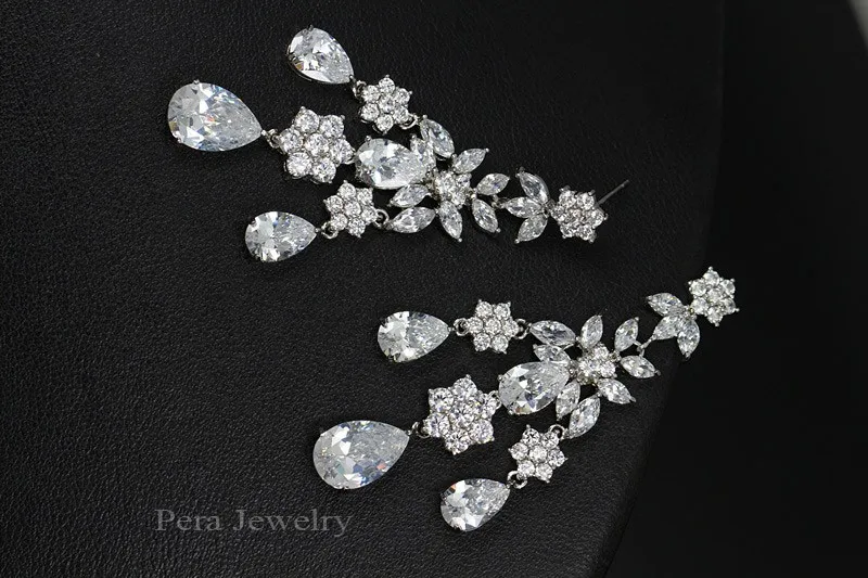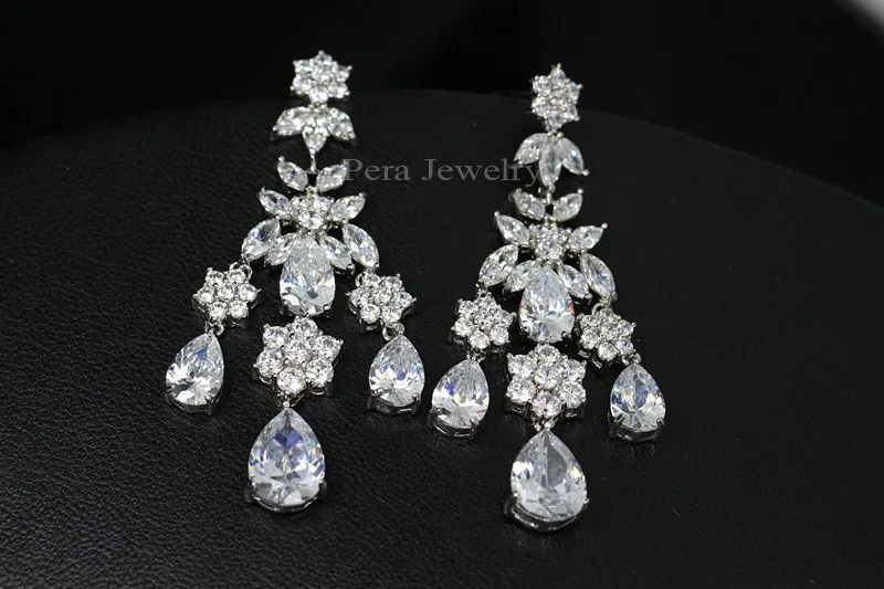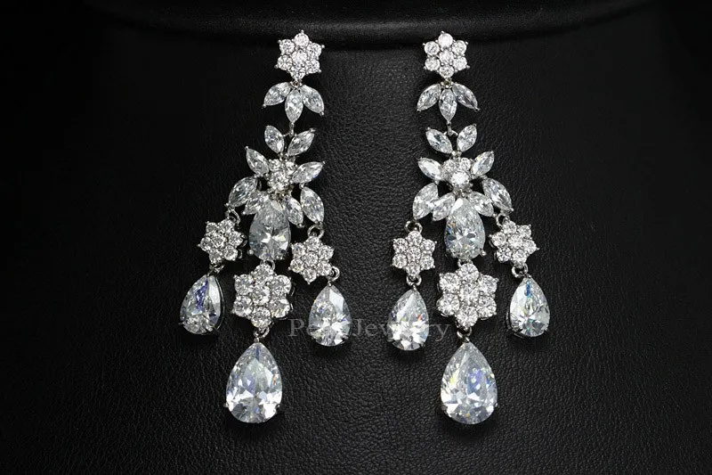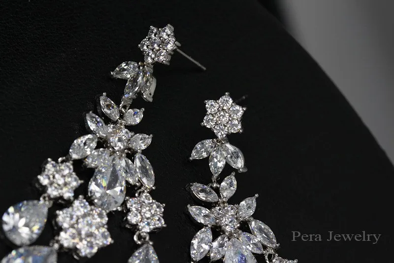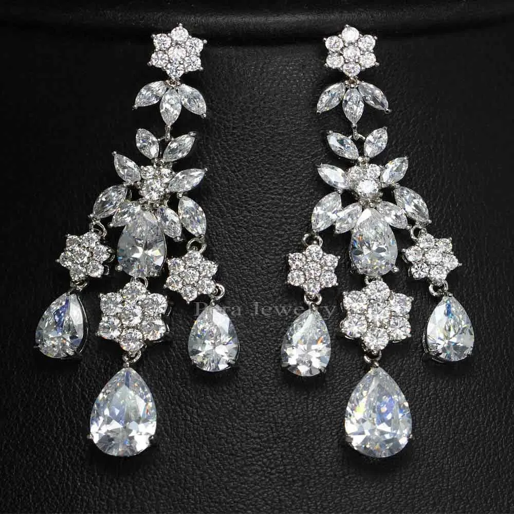 CZ Jewelry- Luxury Women Party Costume Jewelry Full Big Sparkling Cubic Zircon Stone Long Chandelier Drop Earrings For Party Gift E085