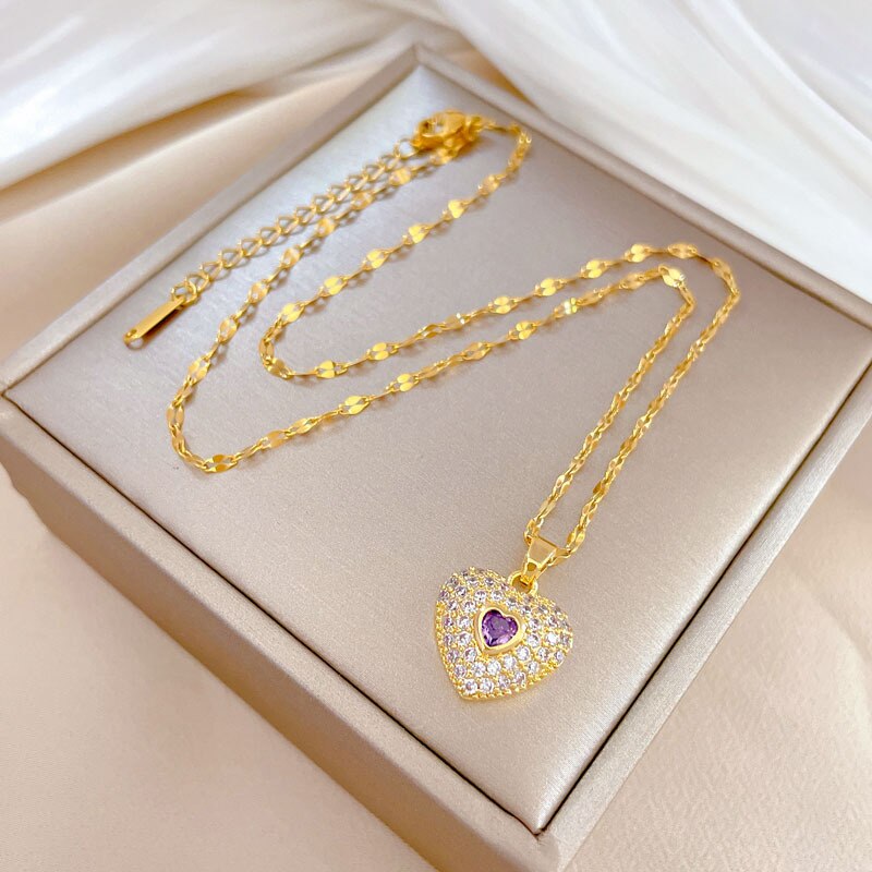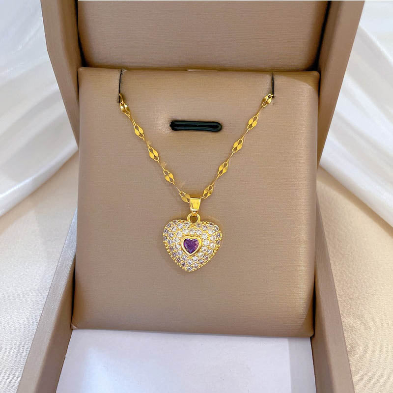 585 Gold Jewelry-316L Stainless Steel Full Crystal Romantic Purple Heart Pendant Necklace For Women Friend Friendship Gifts