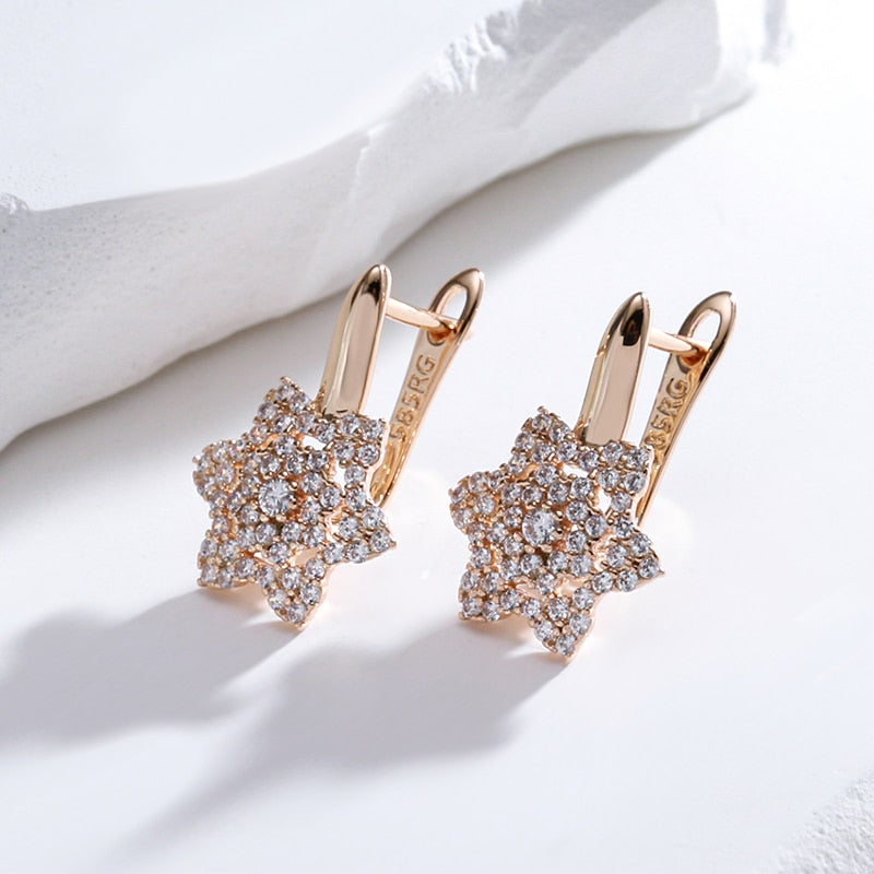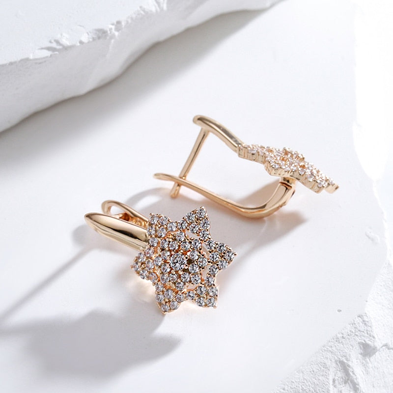 585 Gold Jewelry-Full Paved White Zircon 585 Gold Color Star Dangle Earrings Women Party Wedding Sparkling Jewelry Fashion Accessories