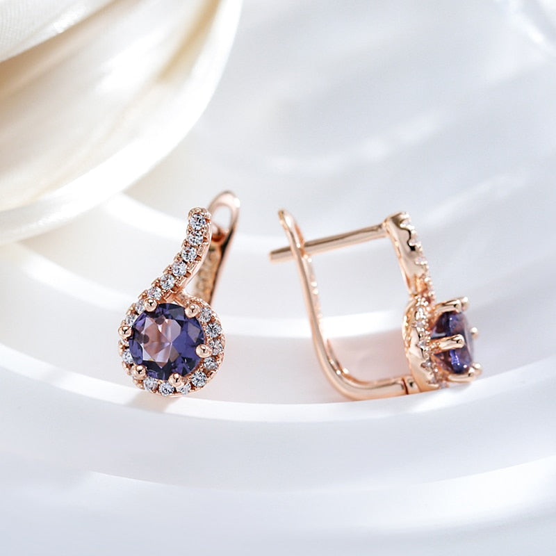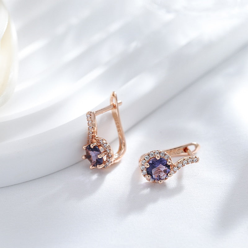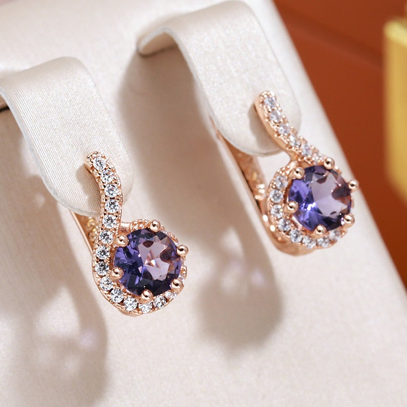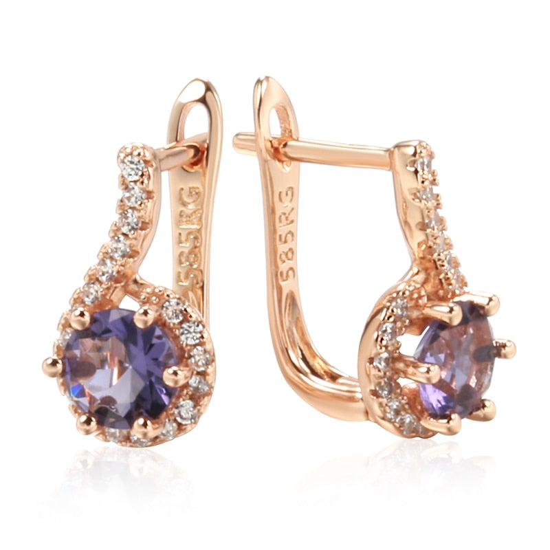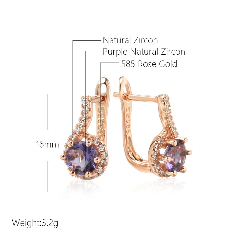 585 Gold Jewelry-Full Zircon Surround Purple Drop Earrings for Women 585 Gold Color Vintage Jewelry Party Daily sparkling Ear Dangles