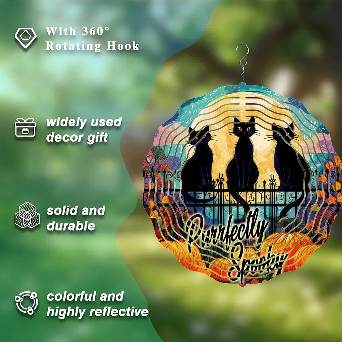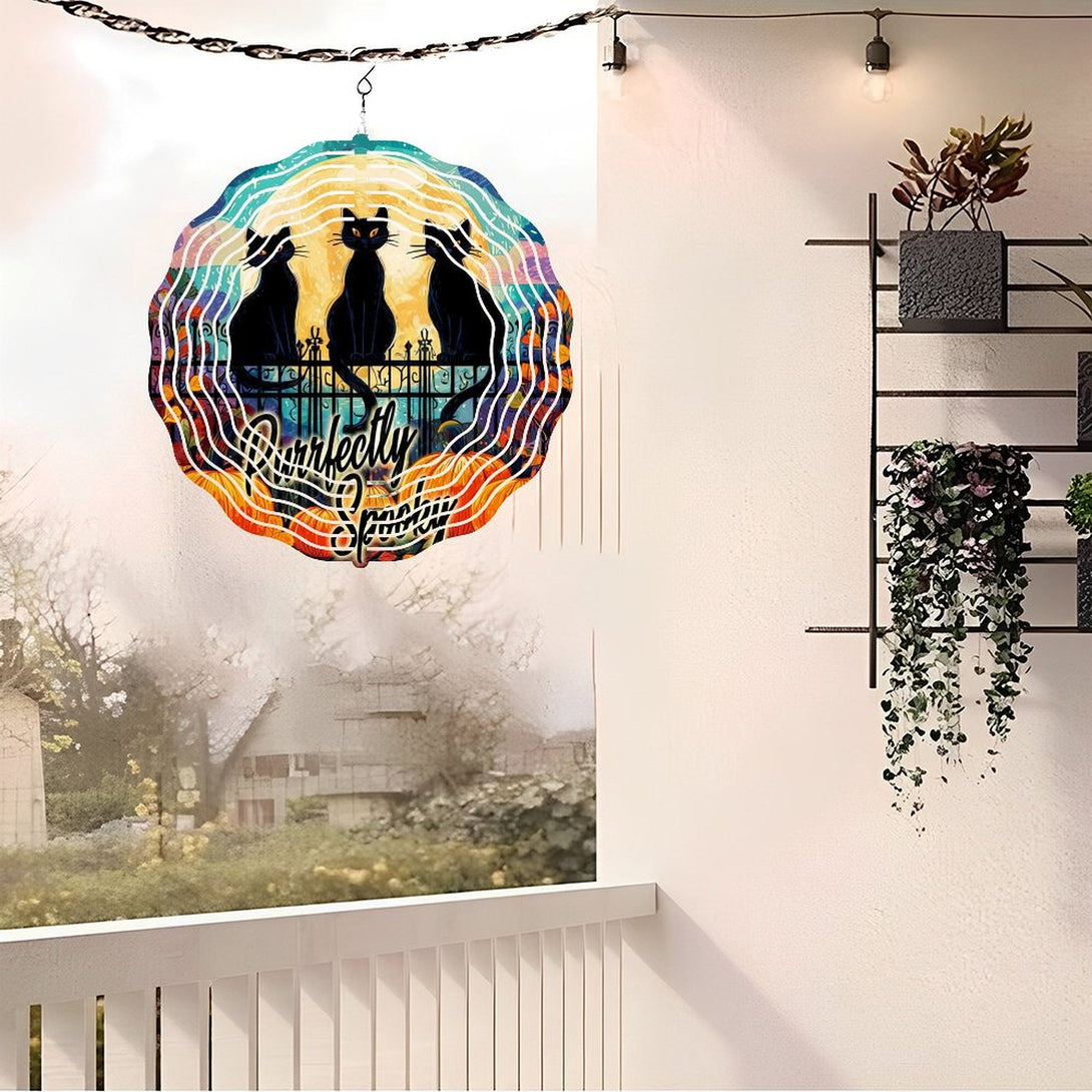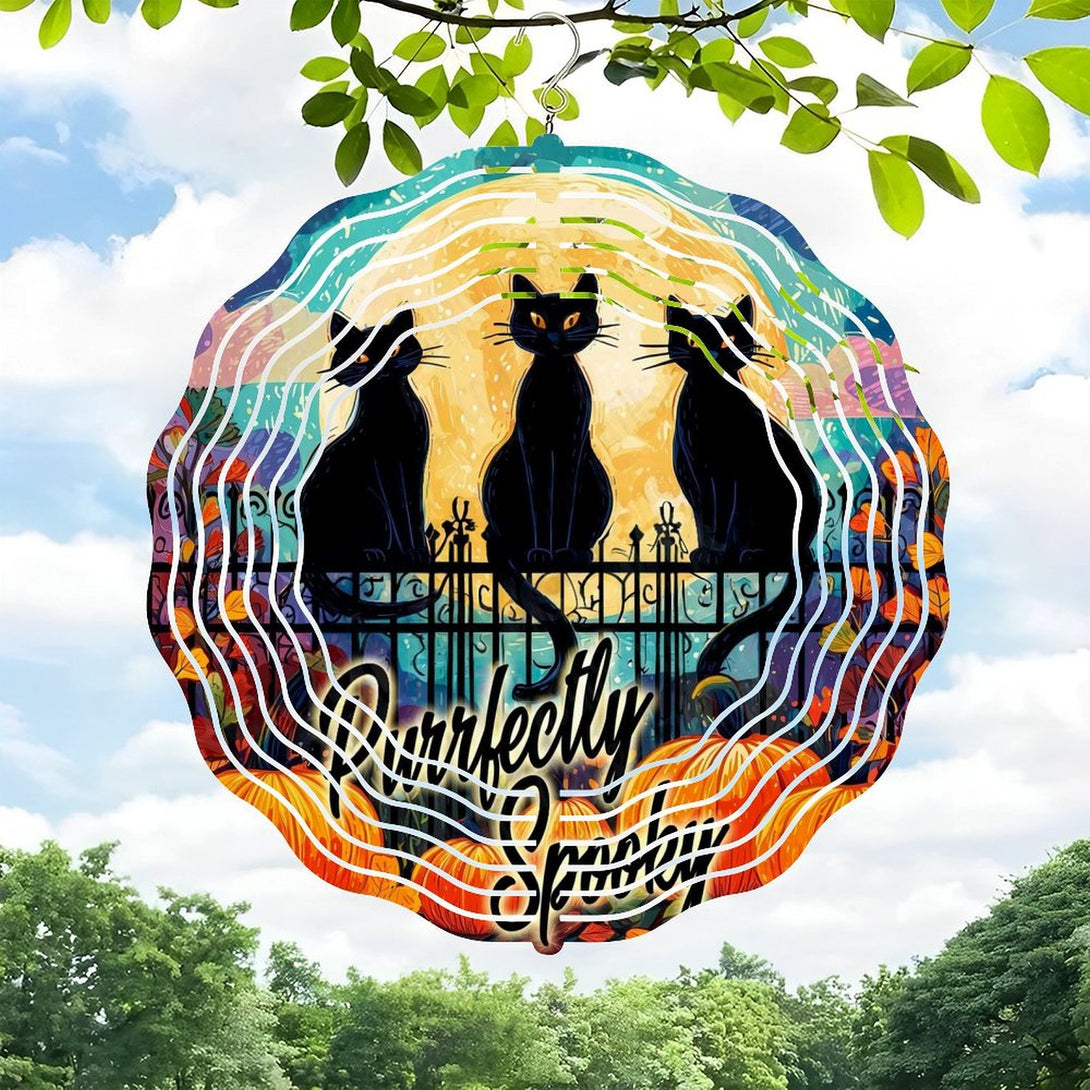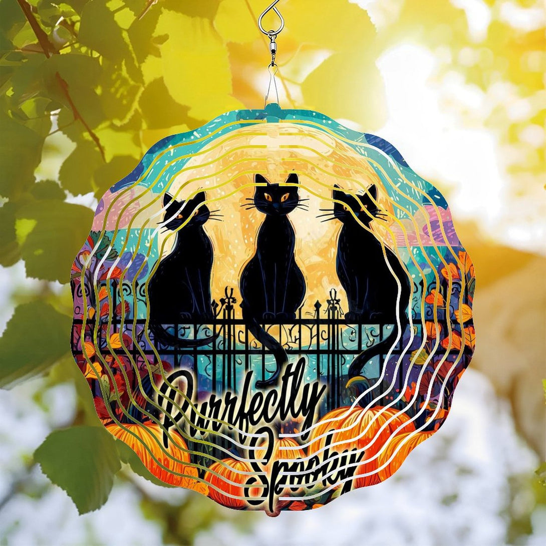 Funky Home Decor: 3 Black Cats on A Fence Wreath Wind Chimes,Pumpkin Cat Wind Chimes for Homes, Bars, Offices, Man Caves, Garages, And Living Rooms. Also Makes A Great Gift. Style 10*10in(25*25cm)