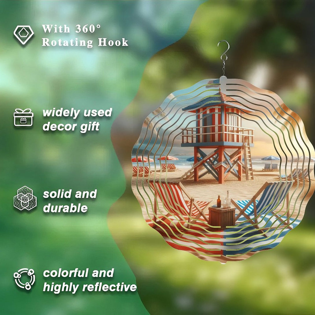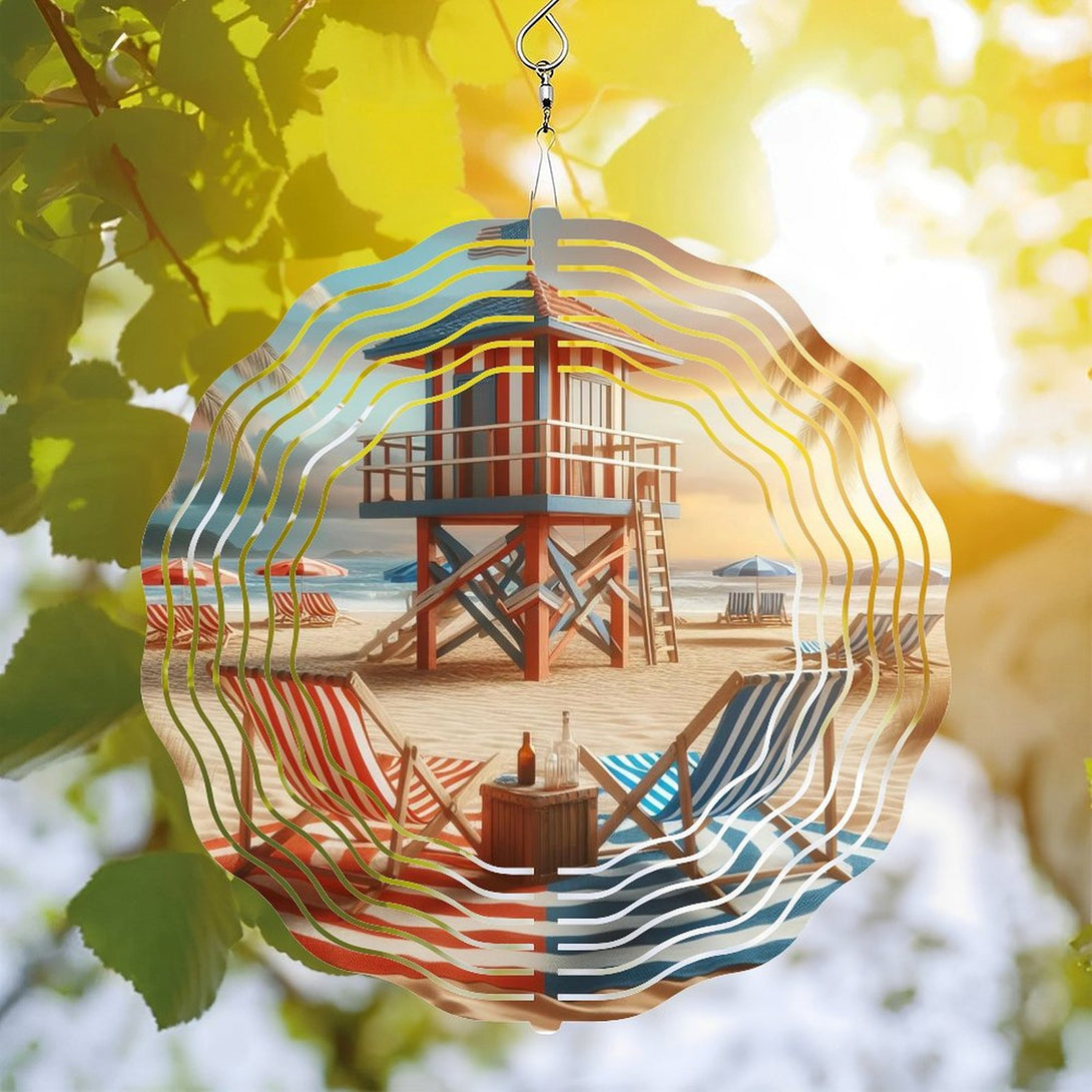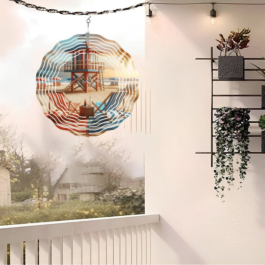 ,Beach Chairs with Life Guard Stand Wind Chimes ,Home Decor Gift Ocean Lover Wind Chimes.Gift for Her for Homes, Bars, Offices, Man Caves, Garages, And Living Rooms. for Your Home Or Gift,10*10in(25*25cm)