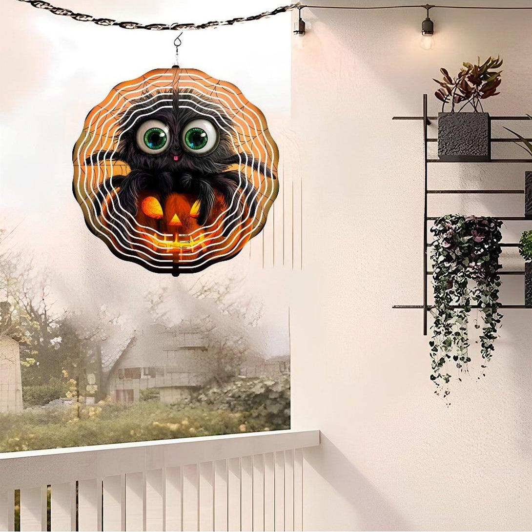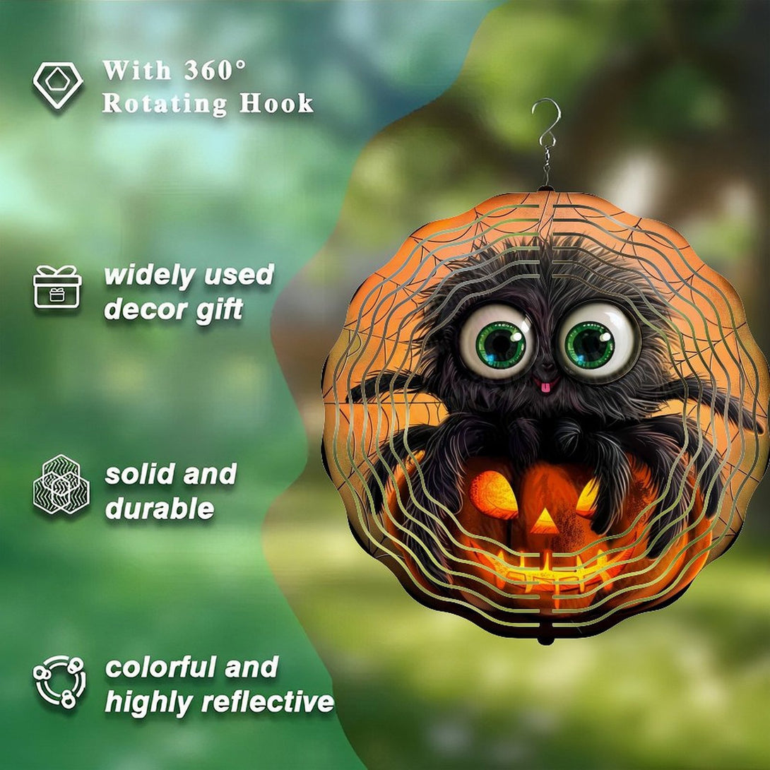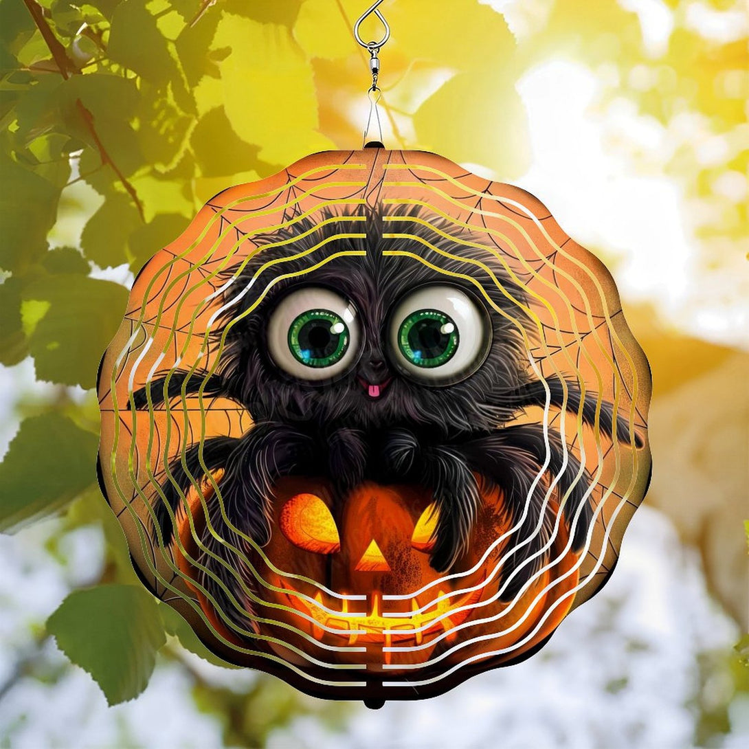 ,Cute Furry Black Spider on A Pumpkin Wind Chimes ,Hallo-ween Spider Wind Chimes for Homes, Bars, Offices, Man Caves, Garages, And Living Rooms. for Your Home Or Gift,10*10in(25*25cm)