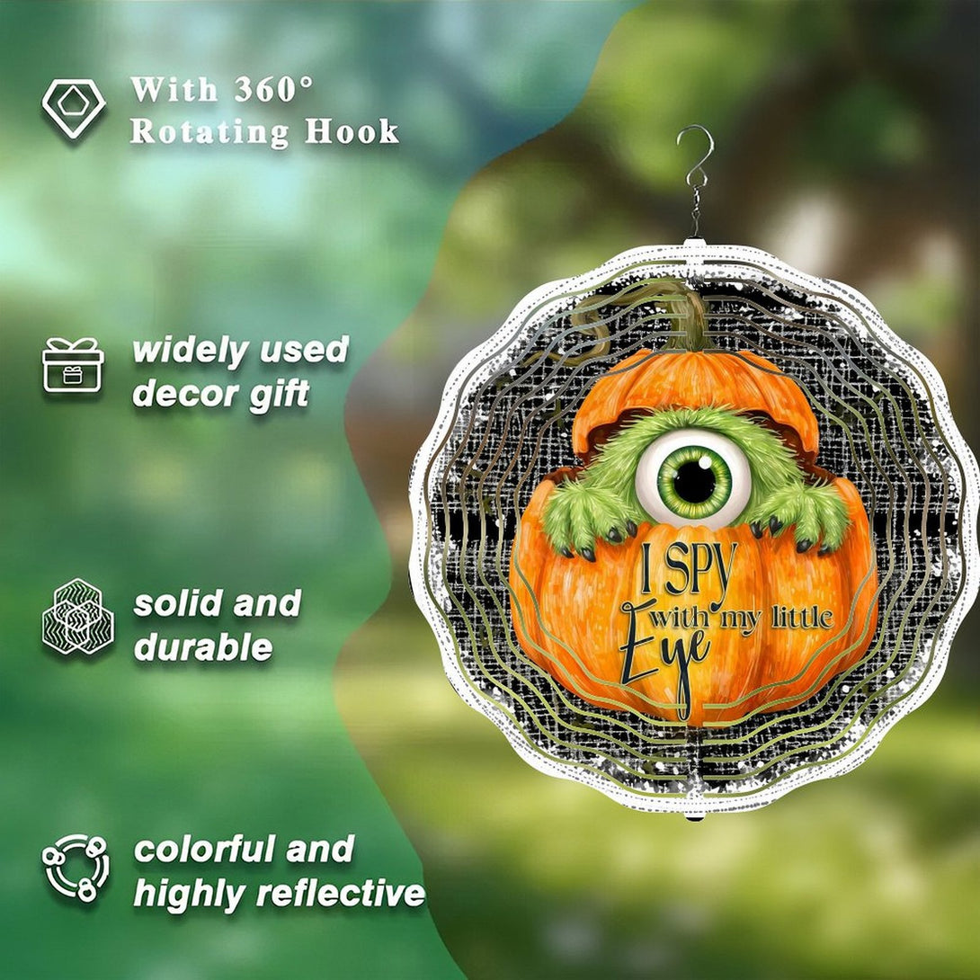 ,Cute Furry One Eyed Monster Inside of Pumpkin Wind Chimes ,Monster Decor Wind Chimes for Homes, Bars, Offices, Man Caves, Garages, And Living Rooms. Hallo-ween Gift,10*10in(25*25cm)
