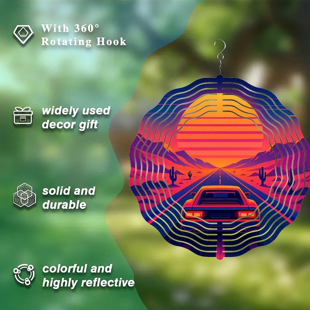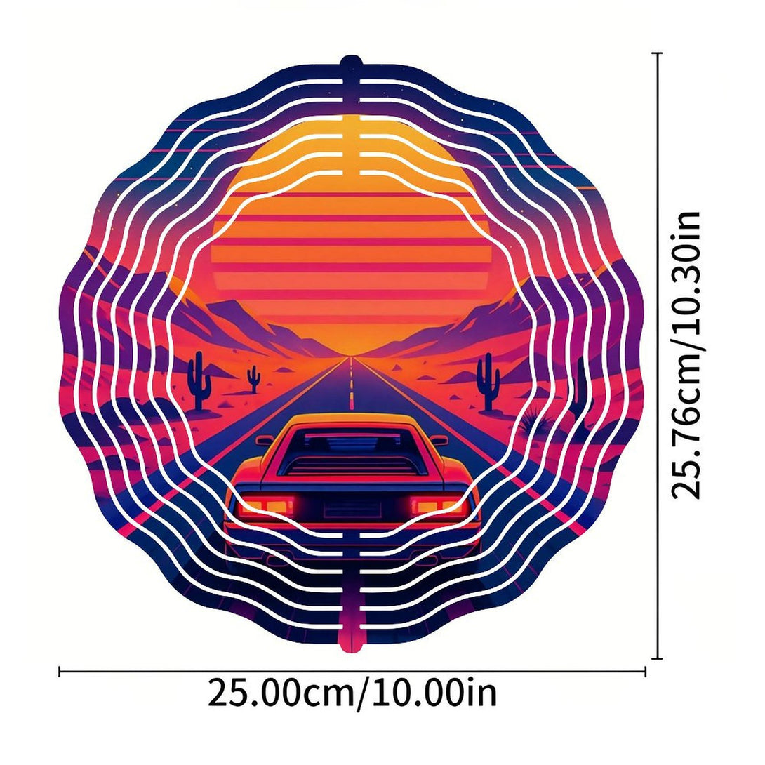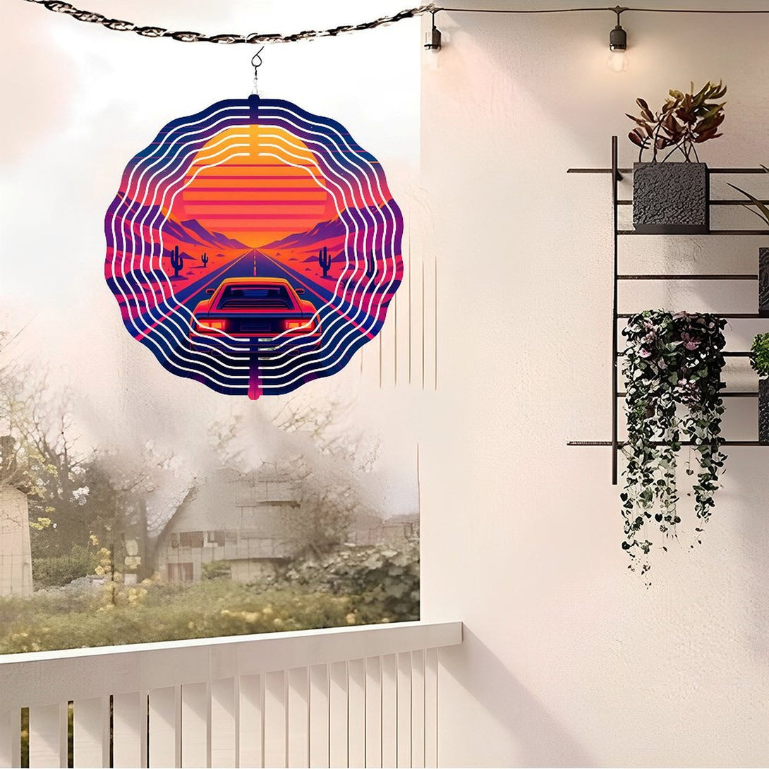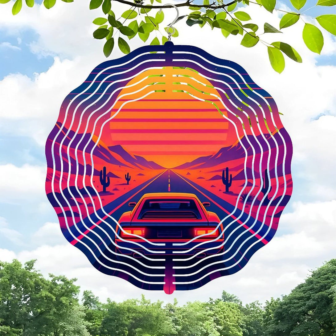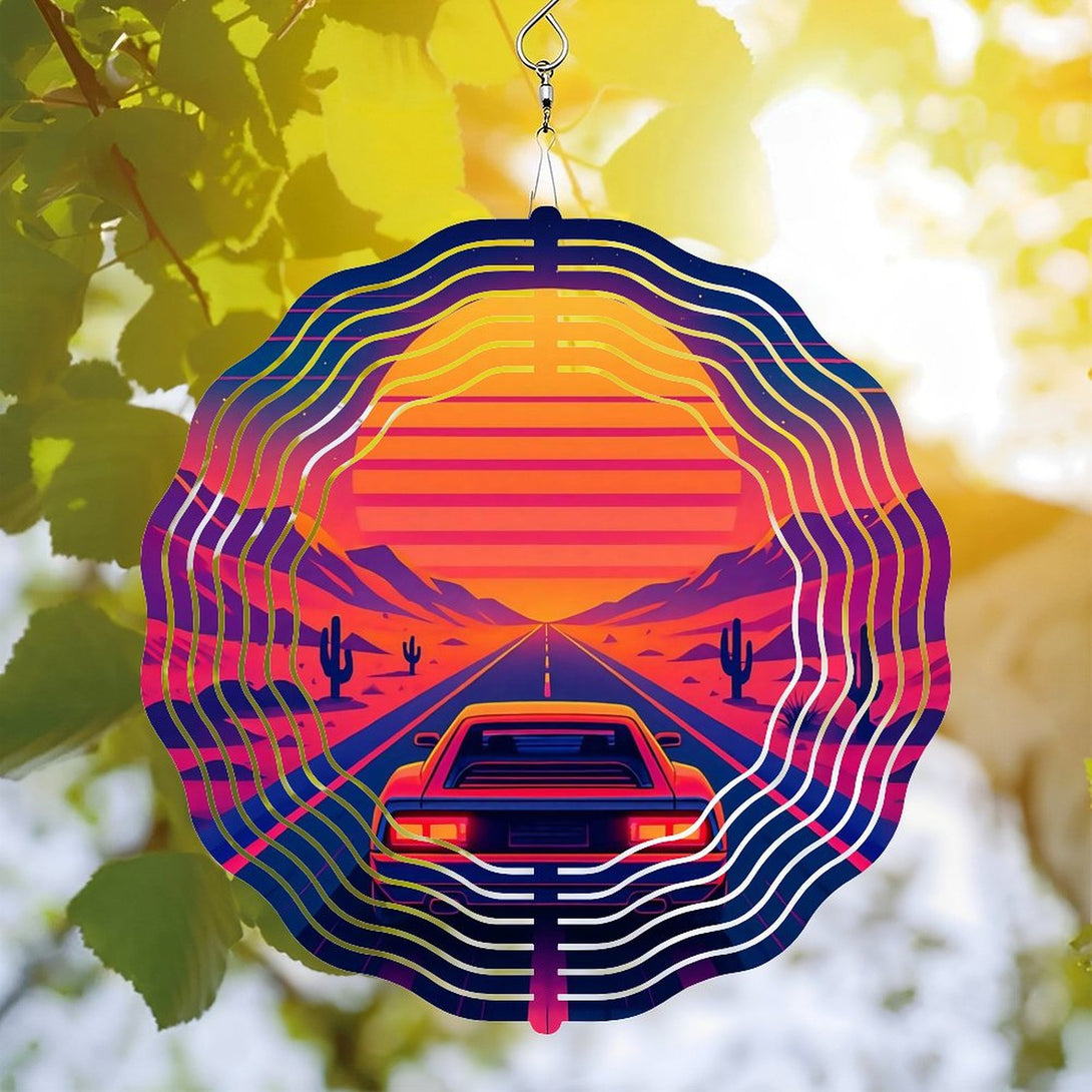 ,Desert Drive 1984, Retro Arcade Sunset Wind Chimes,Vaporwave Road Trip Aesthetic Decor Wind Chimes for Homes, Bars, Offices, Man Caves, Garages, And Living Rooms .Also Makes A Great Gift.,10*10in(25*25cm)