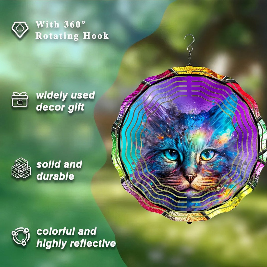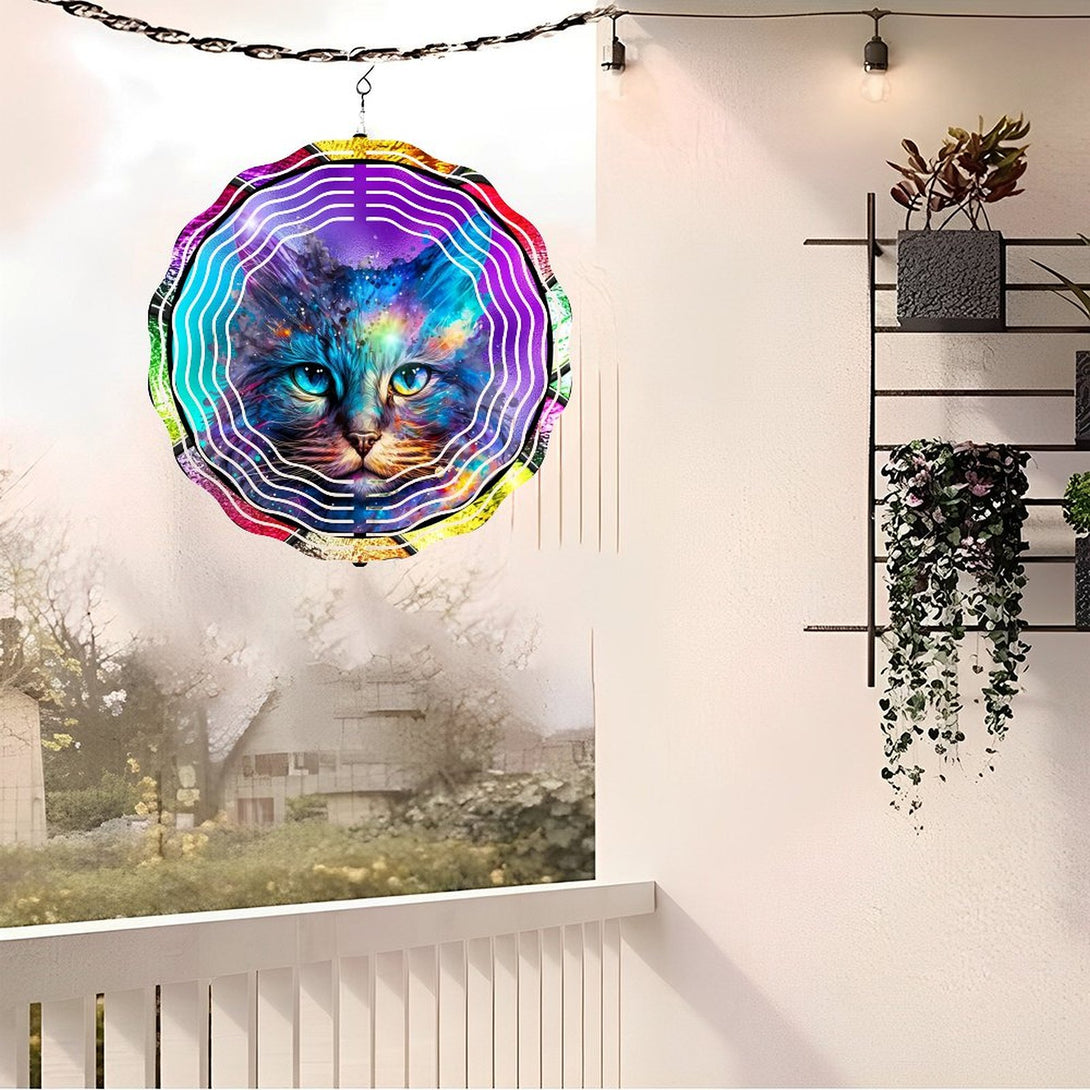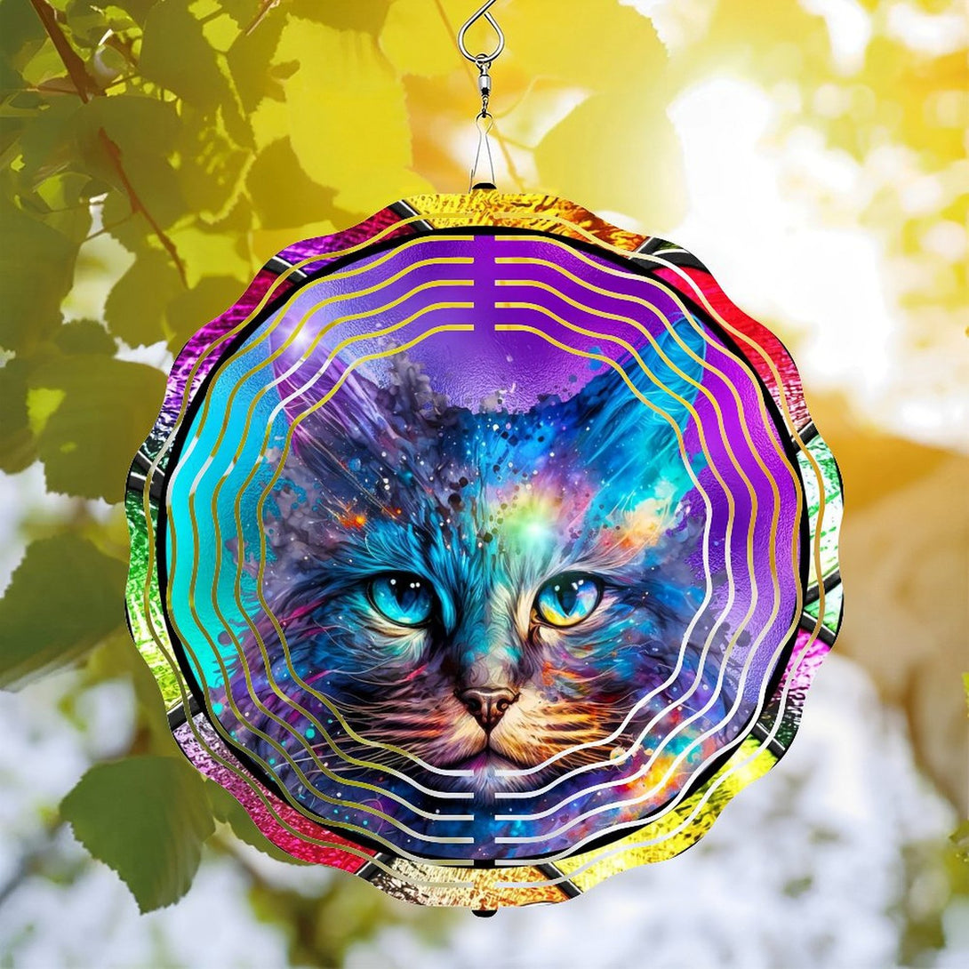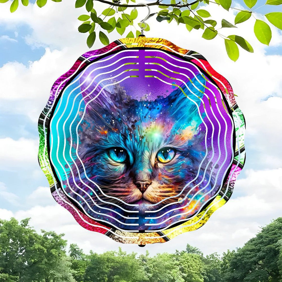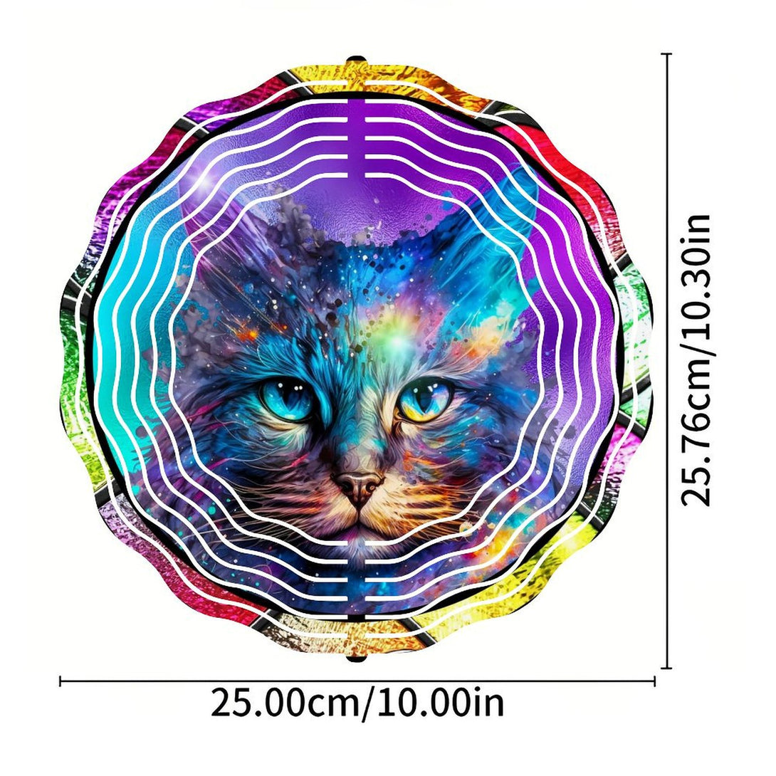 ,Faux Stained Glass Cosmic Kitty Cat Wind Chimes, Cat Lover Wreath Wind Chimes for Homes, Bars, Offices, Man Caves, Garages, And Living Rooms. Also Makes A Great Gift.,10*10in(25*25cm)