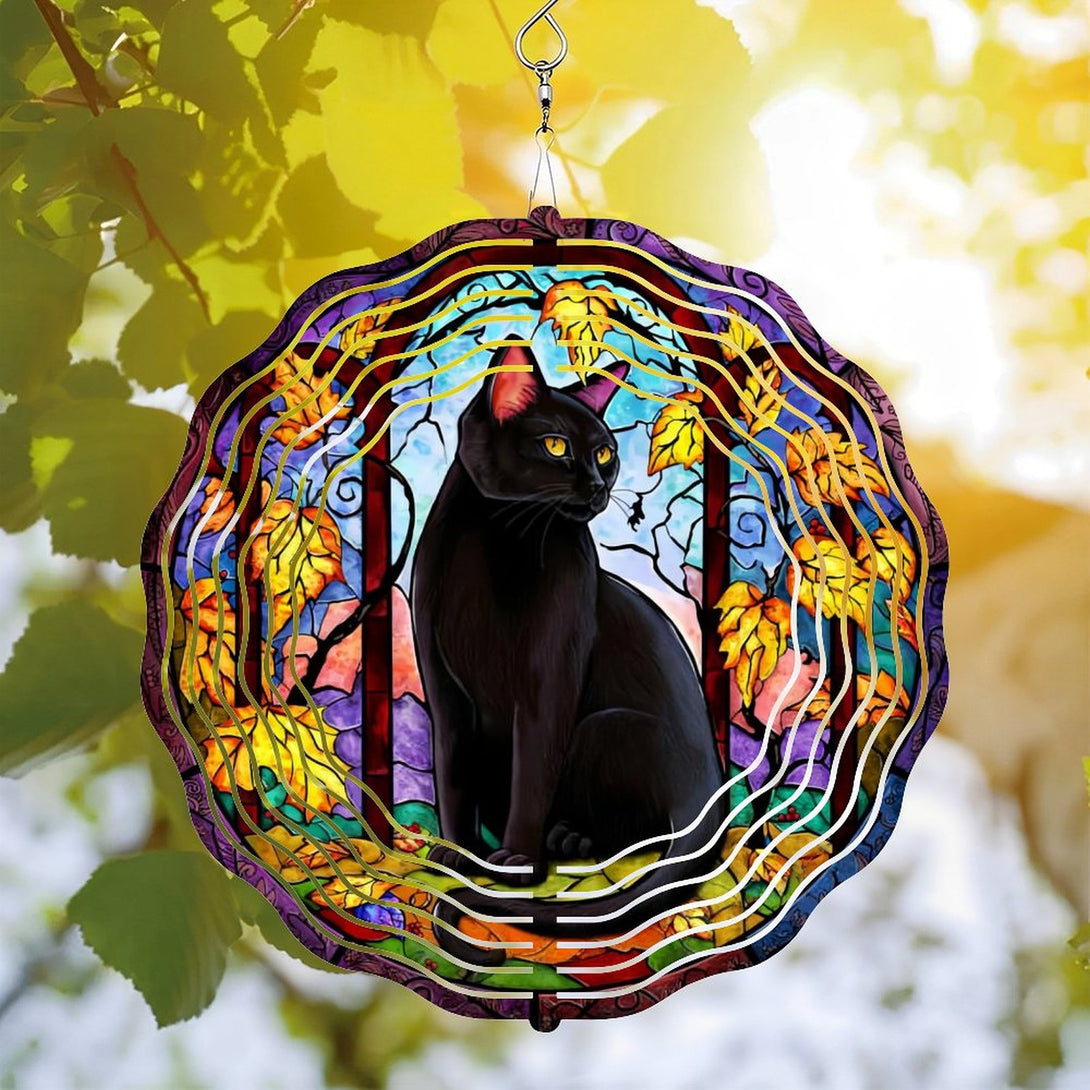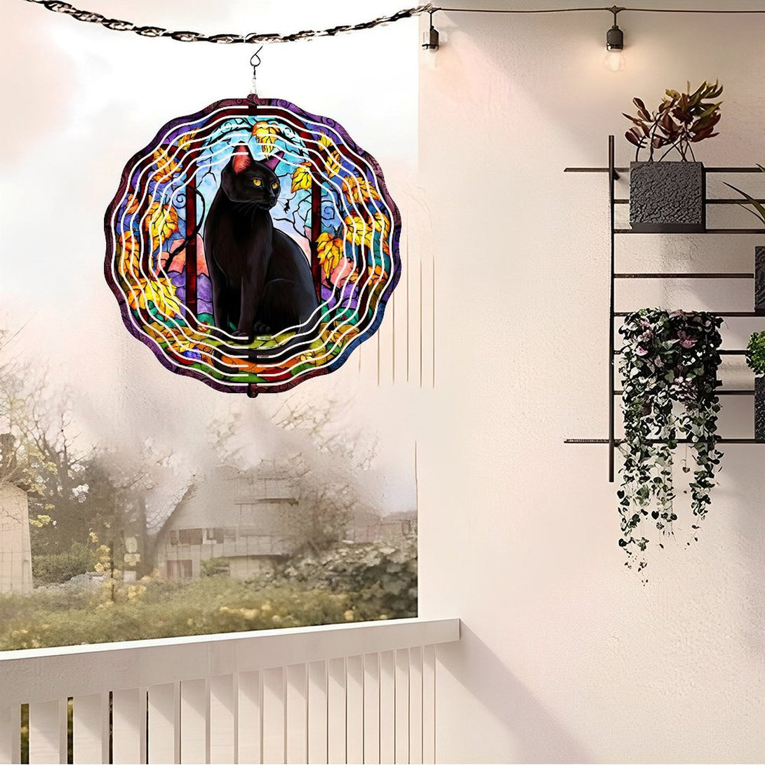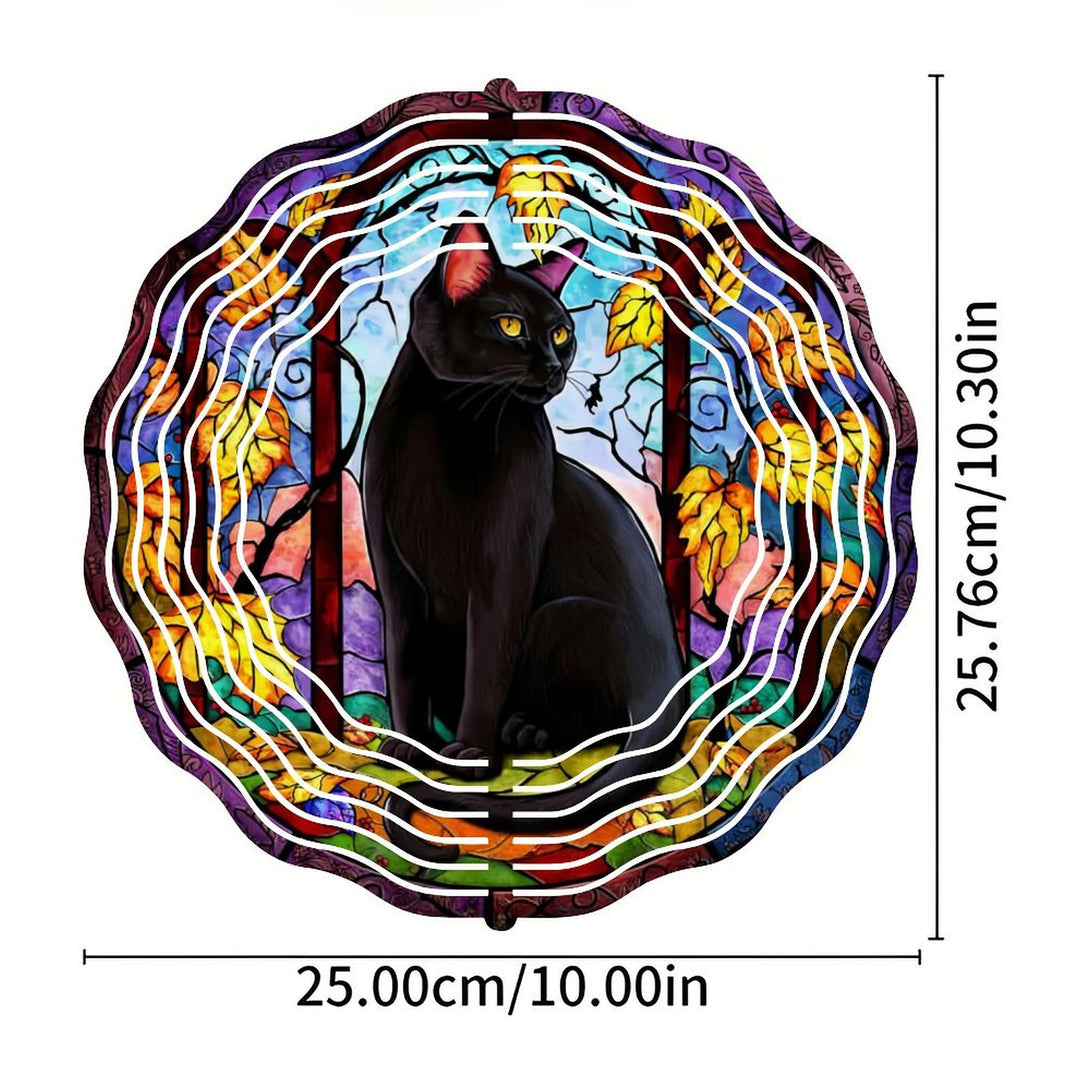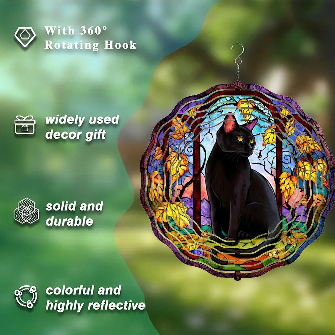 ,Faux Stained Wind Chime ,Black Cat Wreath Wind Chime for Homes, Bars, Offices, Man Caves, Garages, And Living Rooms. Also Makes A Great Gift.,10*10in(25*25cm)