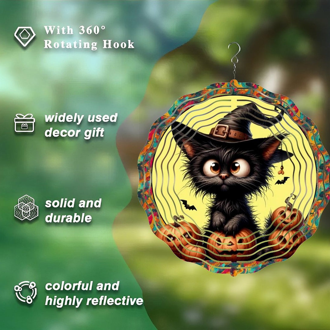 ,Halloween Big Eyes Black Cat Wind Chimes ,Kitty Lover Gift Idea for Homes, Bars, Offices, Man Caves, Garages, And Living Rooms. Also Makes A Great Gift.,10*10in(25*25cm)