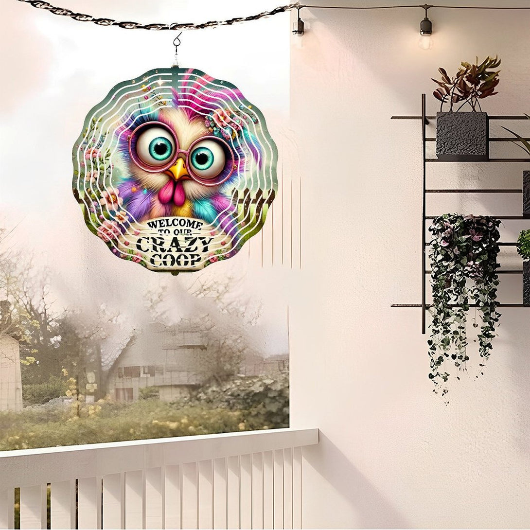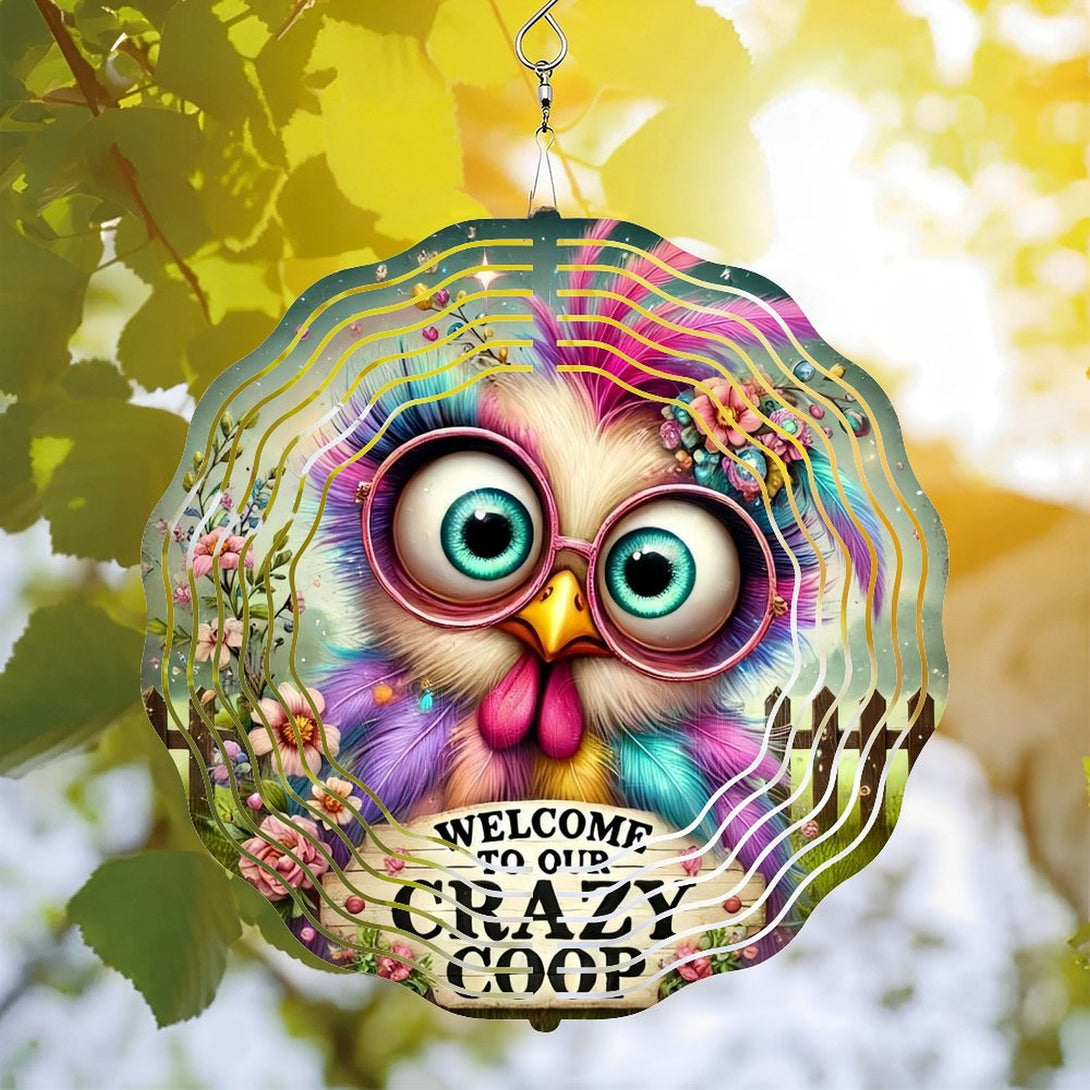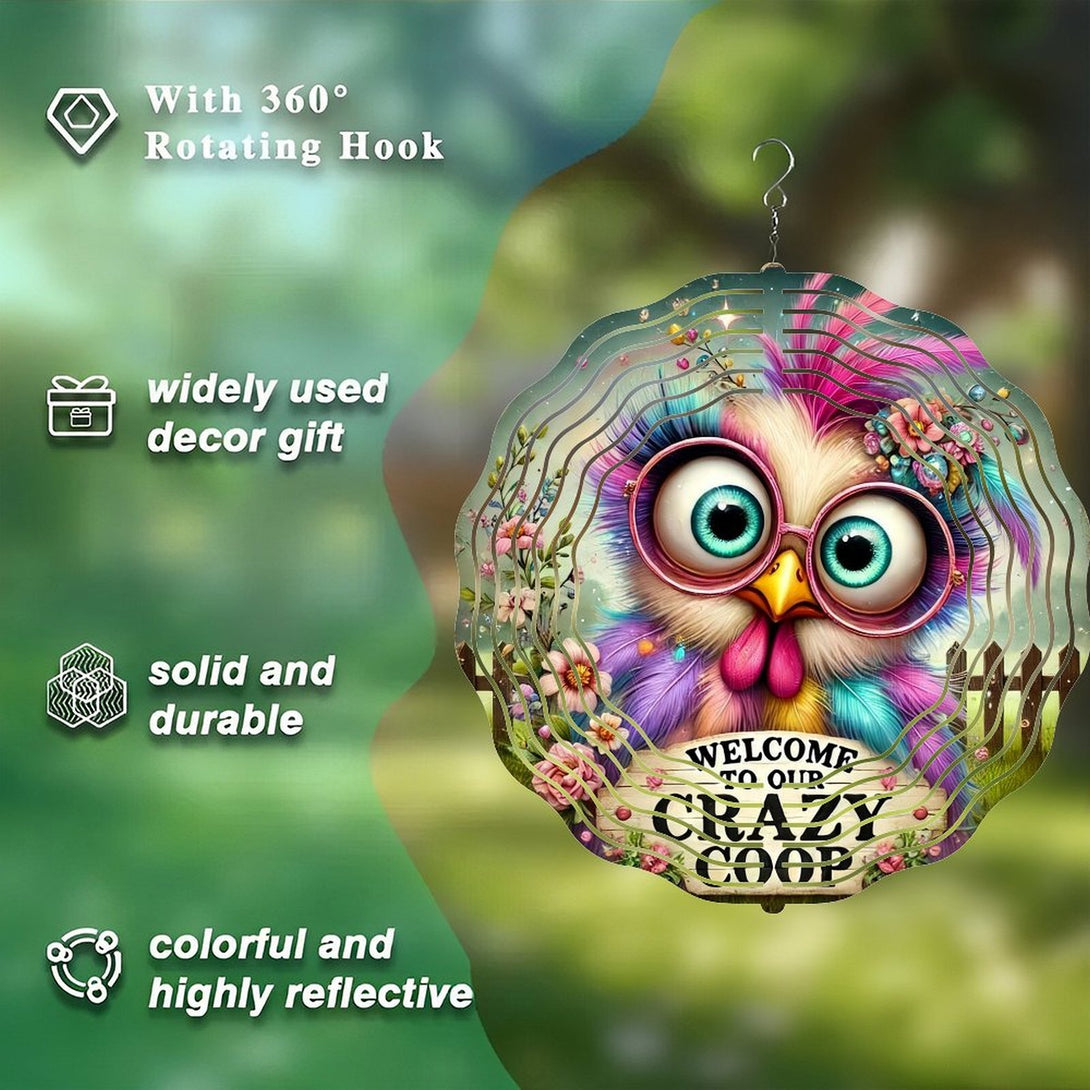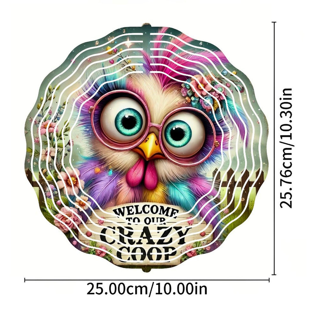 ,Hanging Decor Wind Chime Outdoor Decor,Funny Hen Welcome to Our Crazy Coop Wreath Iron Wind Chime Ideal for Gardens, Patios, Terraces, Balconies, Or Windowsills, Adding A Natural And Artistic Touch,10*10in(25*25cm)