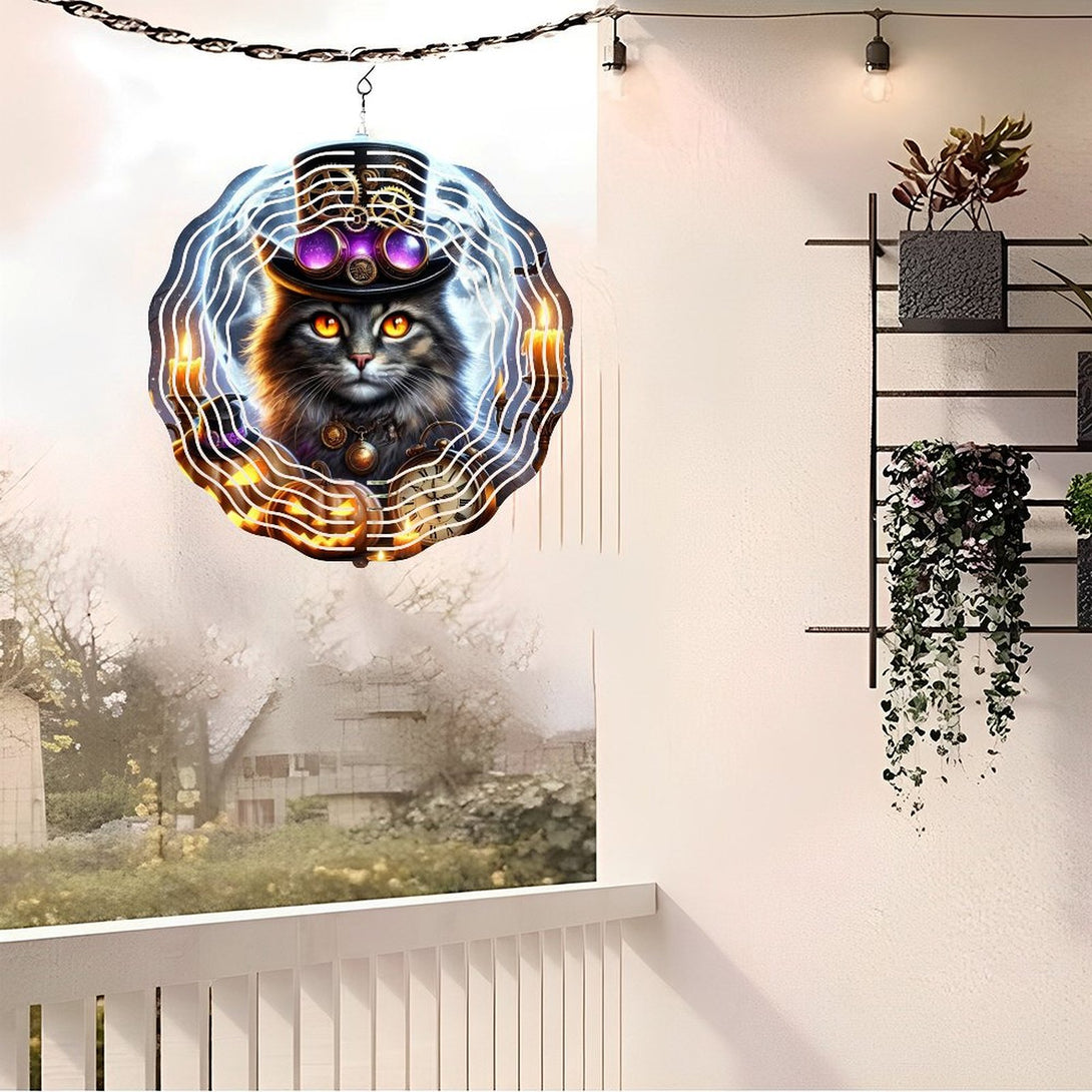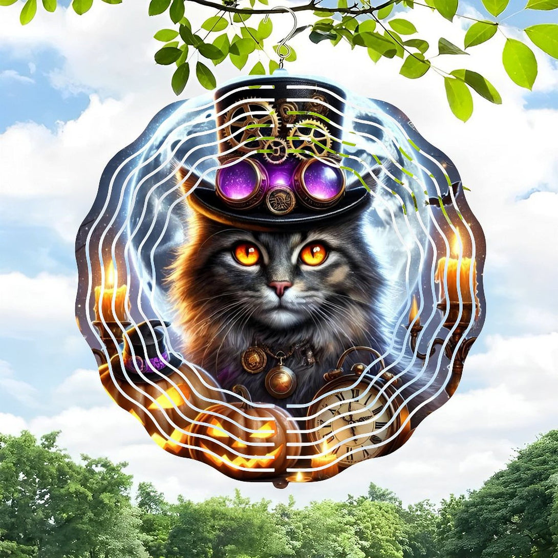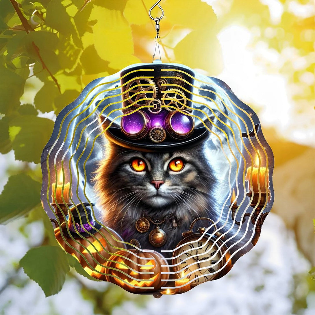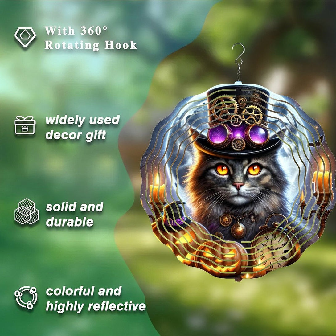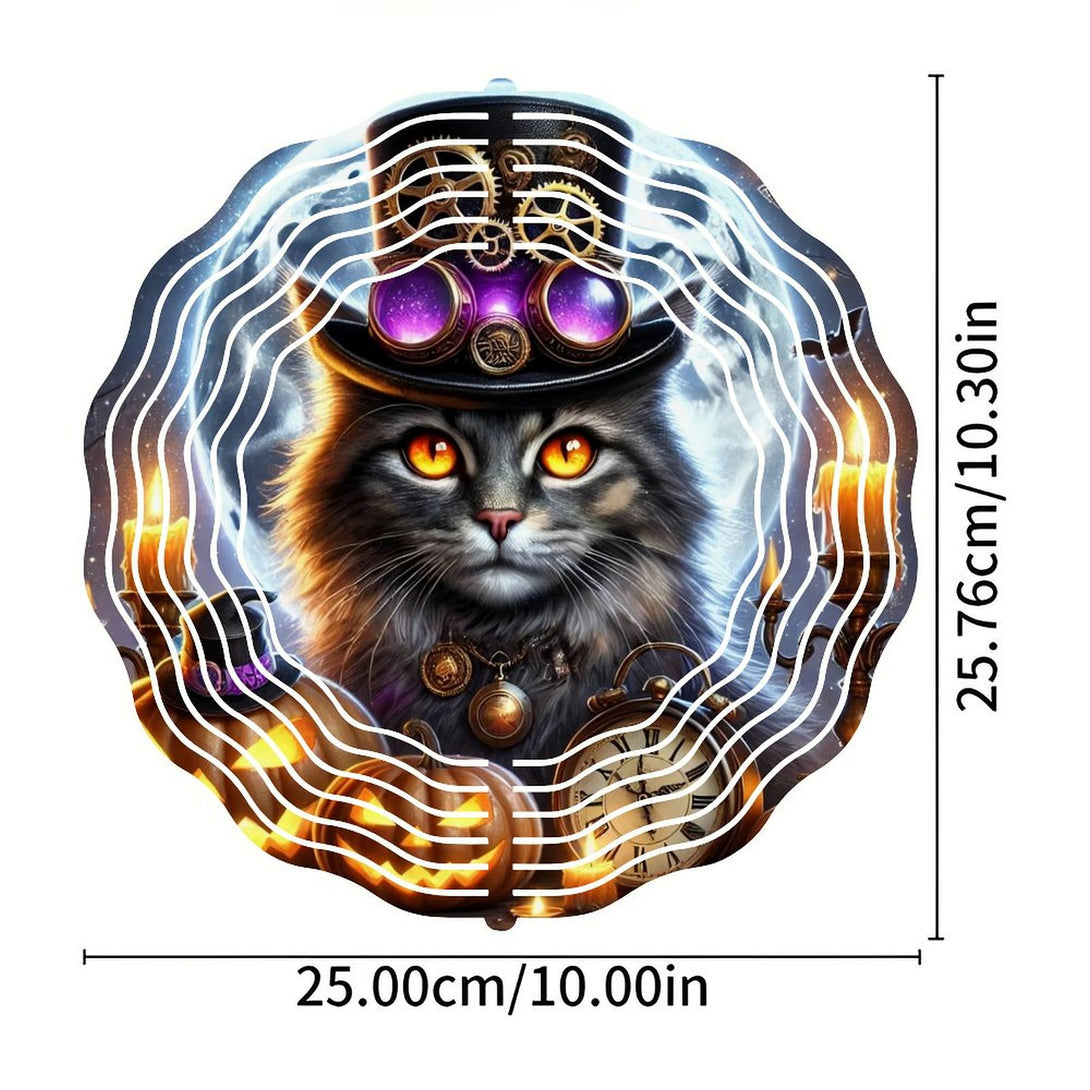 ,Hanging Decor Wind Chime Outdoor Decor,Steampunk Halloween- Cat Full Moon Witchy Cat Iron Wind Chime Ideal for Gardens, Patios, Terraces, Balconies, Or Windowsills, Adding A Natural And Artistic,10*10in(25*25cm)