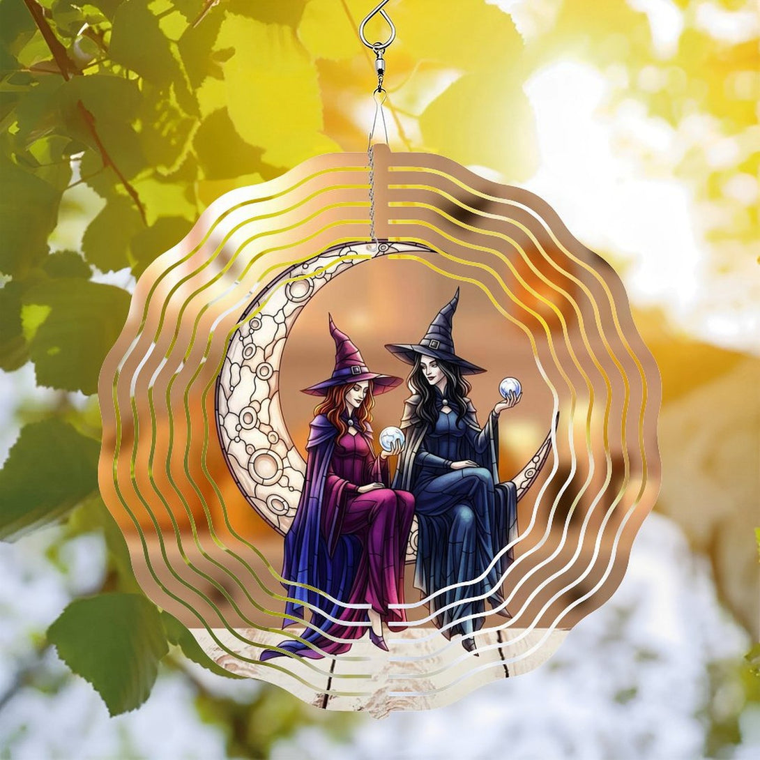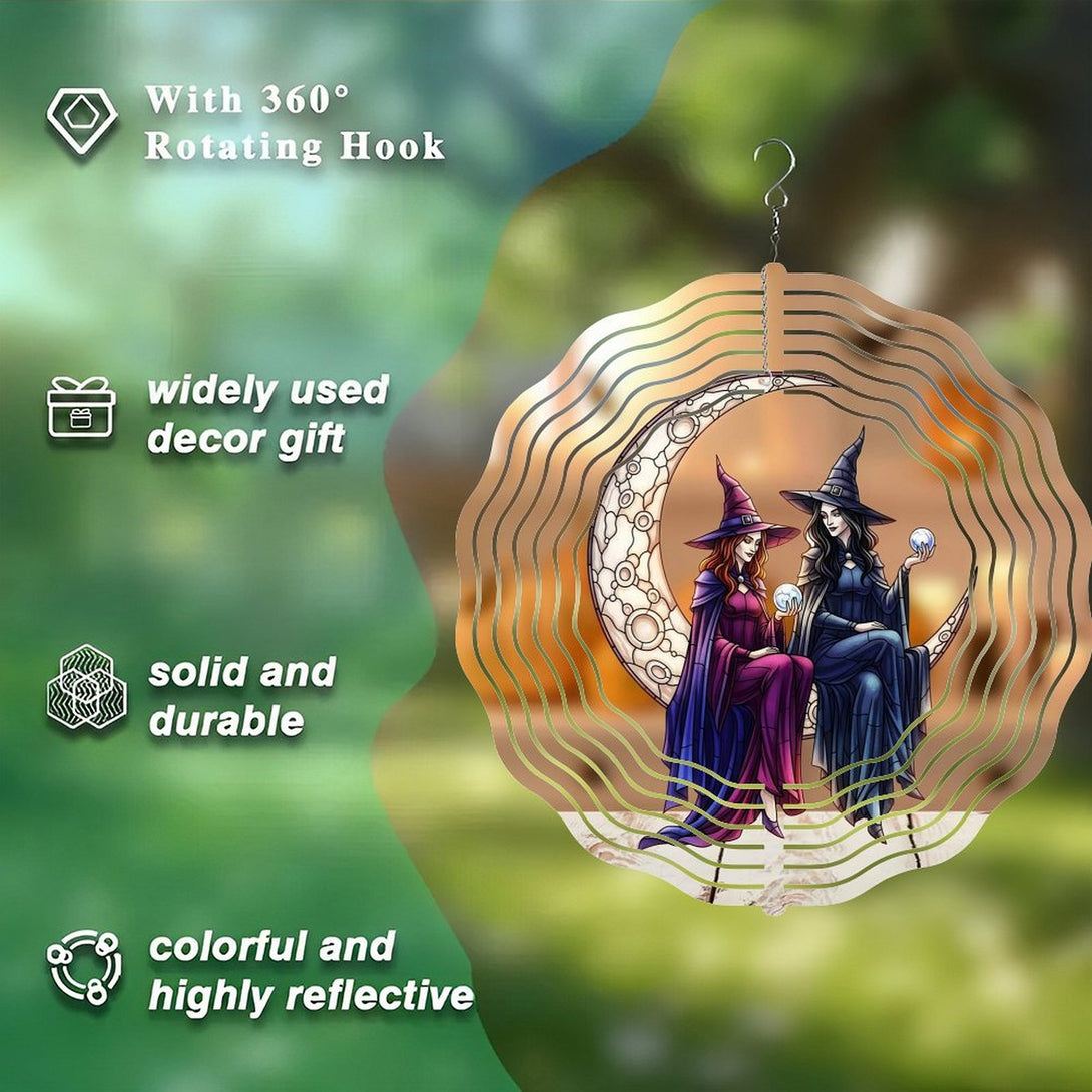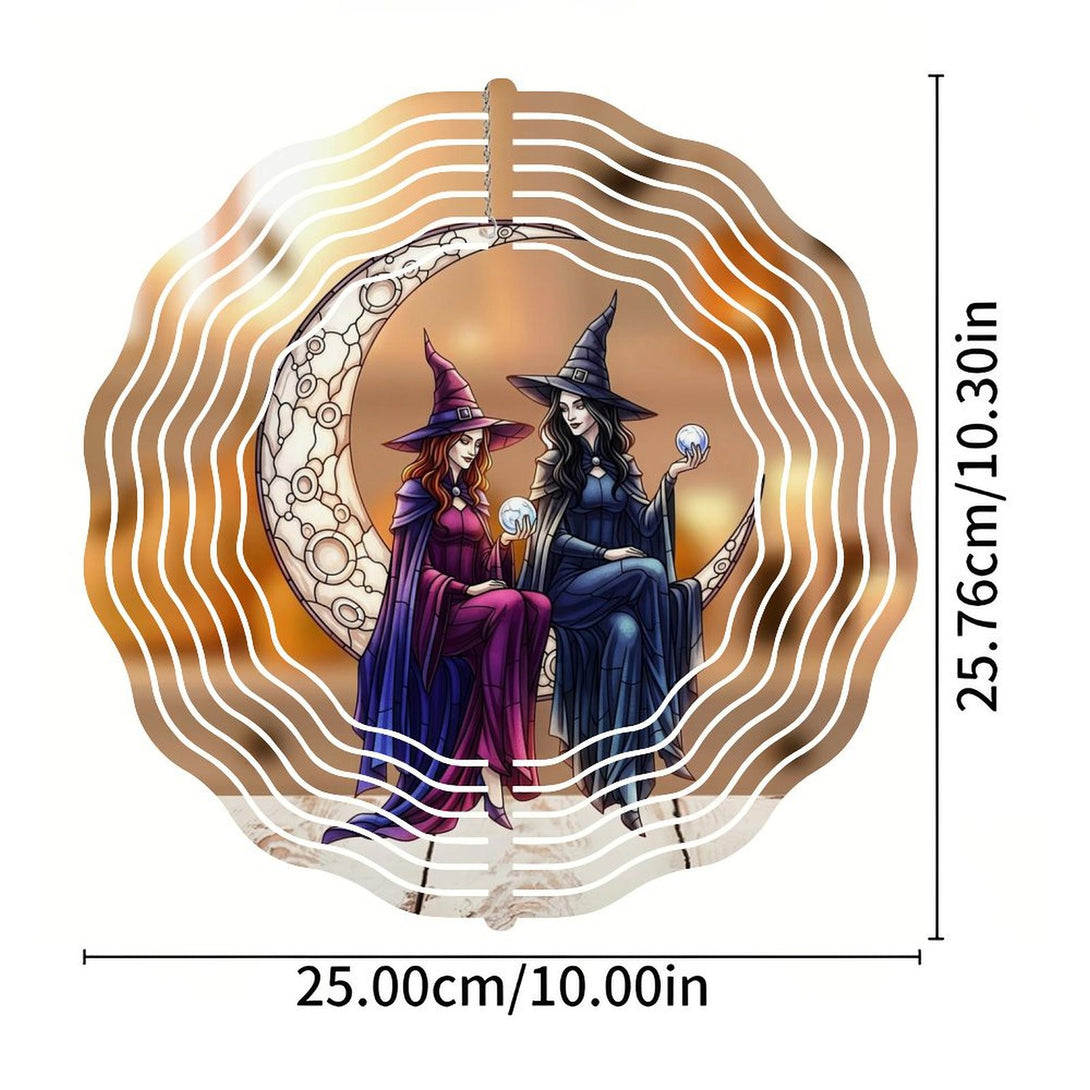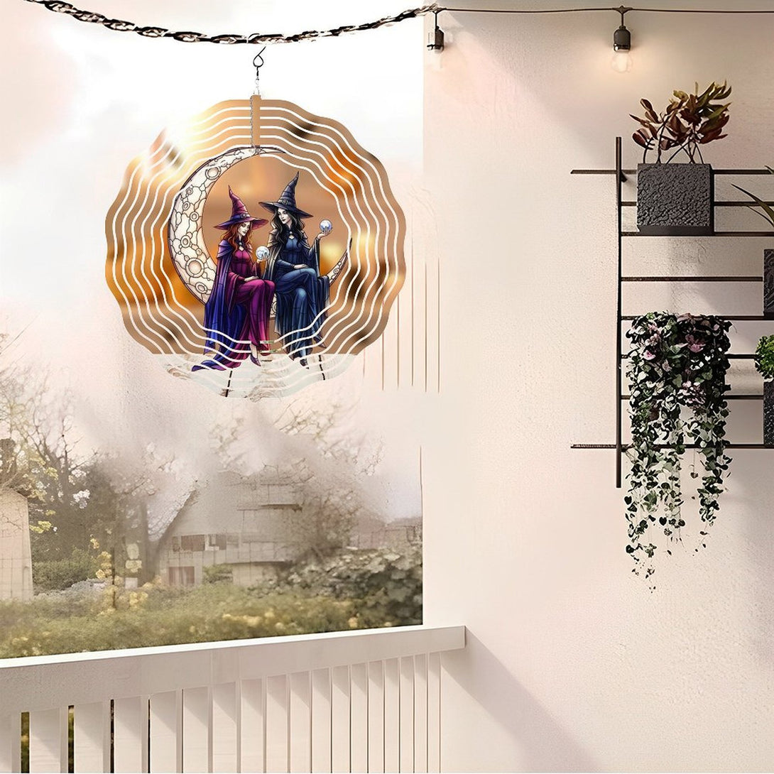 ,Hanging Decor Wind Chime Outdoor Decor,Two Witches On The Moon Halloween- Iron Wind Chime Ideal for Gardens, Patios, Terraces, Balconies, Or Windowsills, Adding A Natural And Artistic Touch to Any Ind,10*10in(25*25cm)