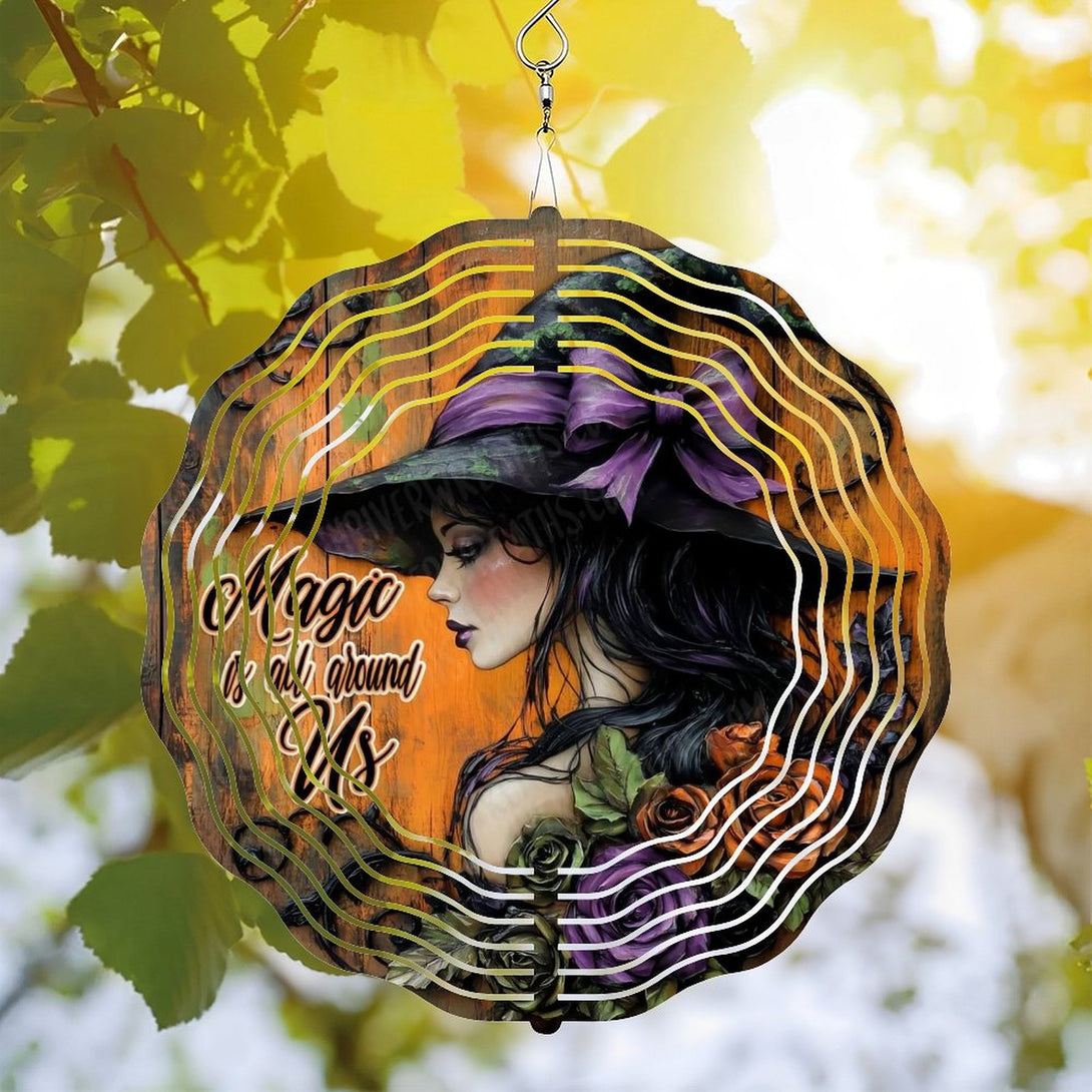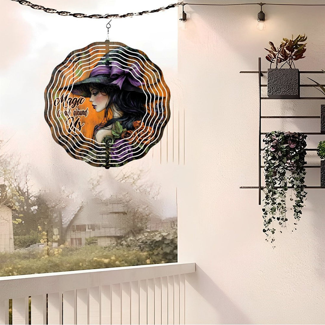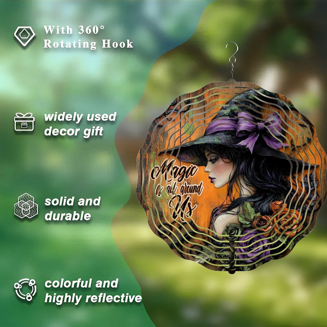 ,Hanging Decor Wind Chime Outdoor Decor,Witch Wreath Magic Is All Around Us Iron Wind Chime Ideal for Gardens, Patios, Terraces, Balconies, Or Windowsills, Adding A Natural And Artistic Touch to Any in,10*10in(25*25cm)