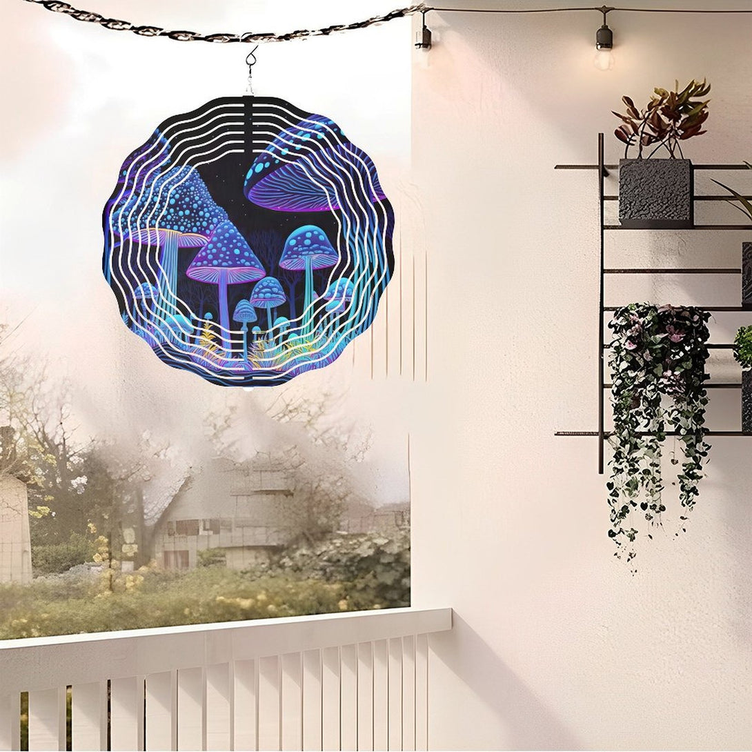 ,Home Trippy Purple Mushroom Forest Blacklight Style Wind Chimes, Neon Style Art Print Wind Chimes for Homes, Bars, Offices, Man Caves, Garages, And Living Rooms .,10*10in(25*25cm)