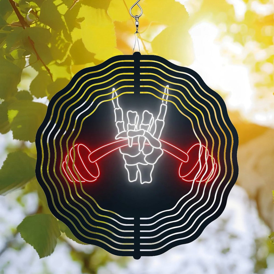 Funky Home Decor: Lifting The Weight Skeleton Rock Hand Wind Chimes,Dumbbell Hand Decor Wind Chimes for Homes, Bars, Offices, Man Caves, Garages, And Living Rooms .Also Makes A Great Gift.