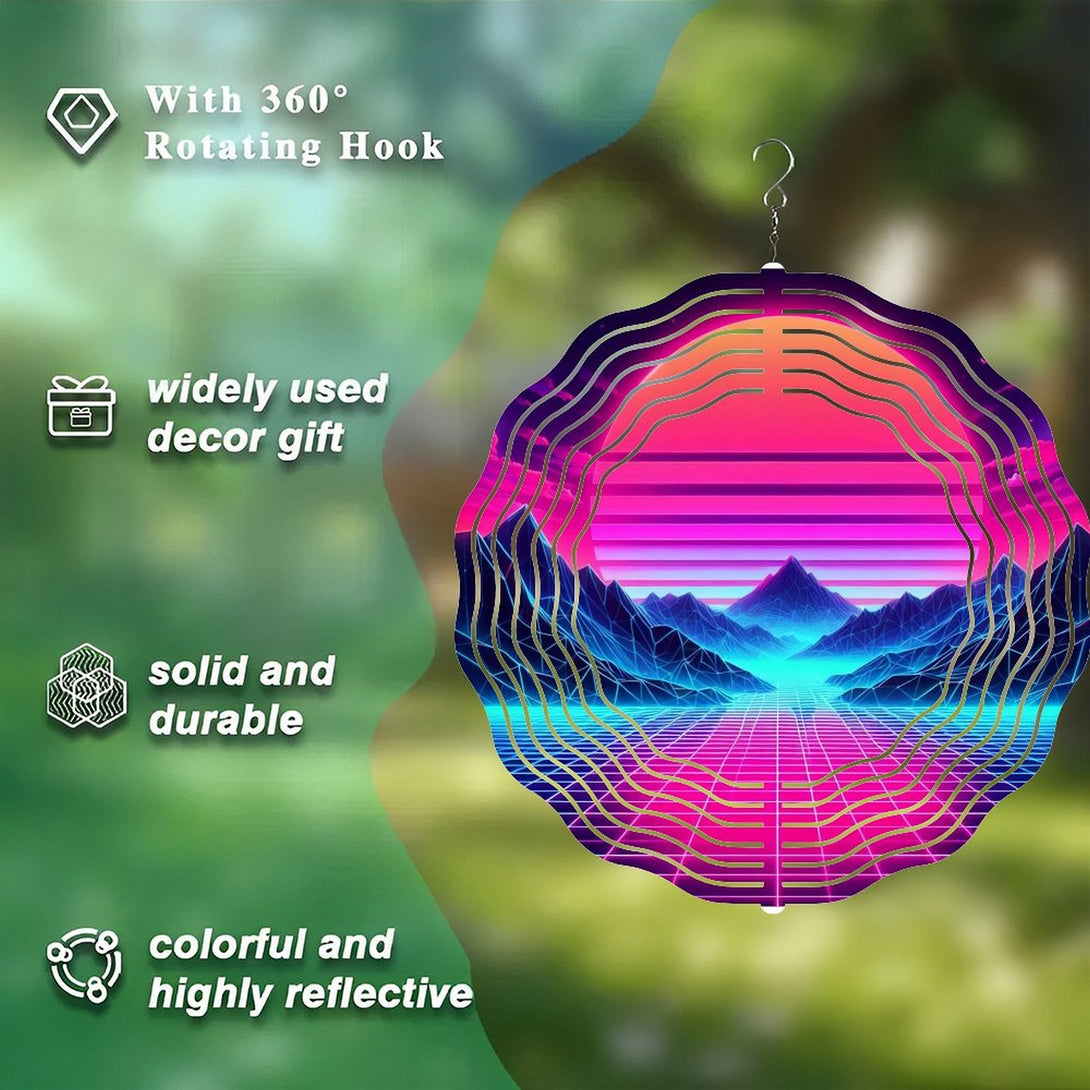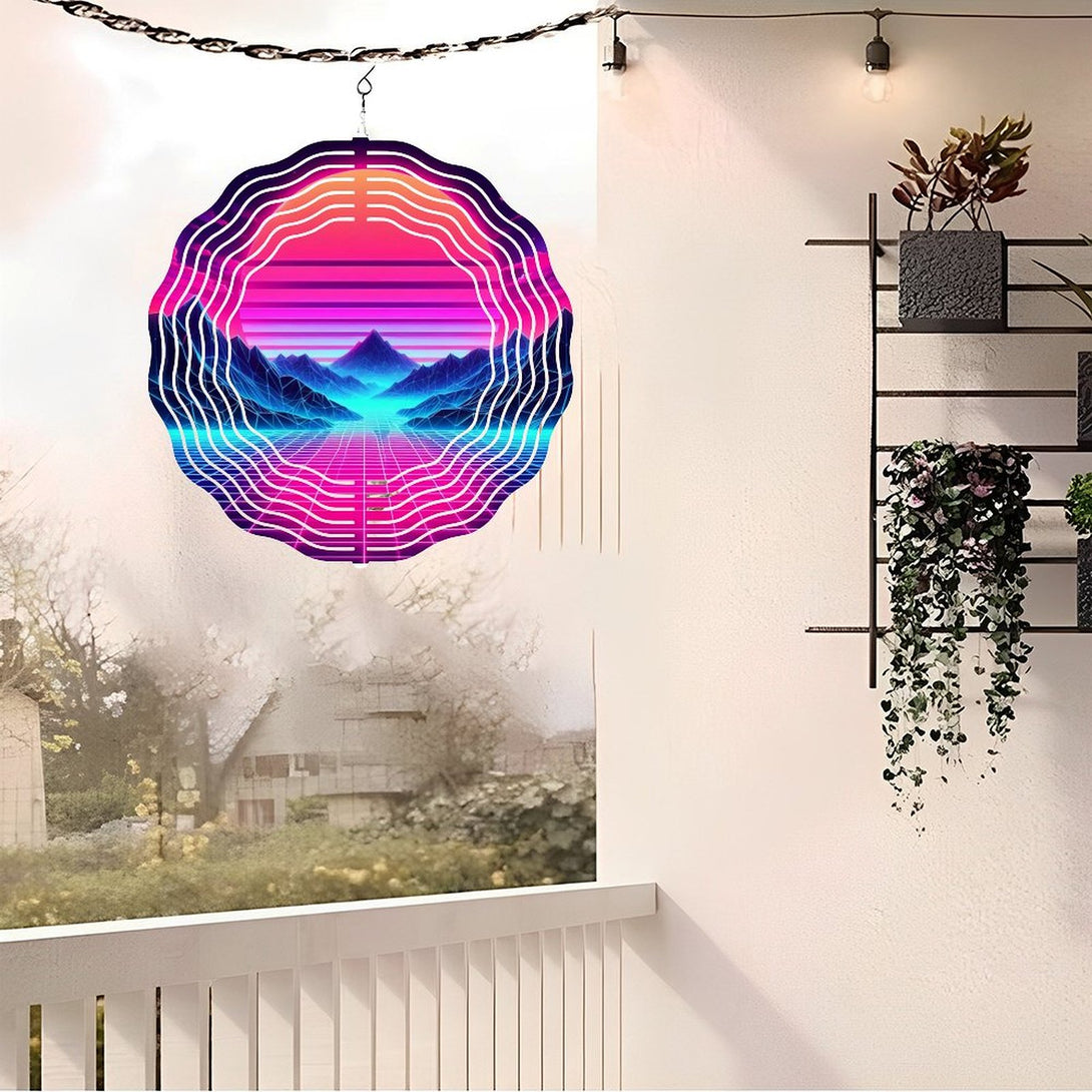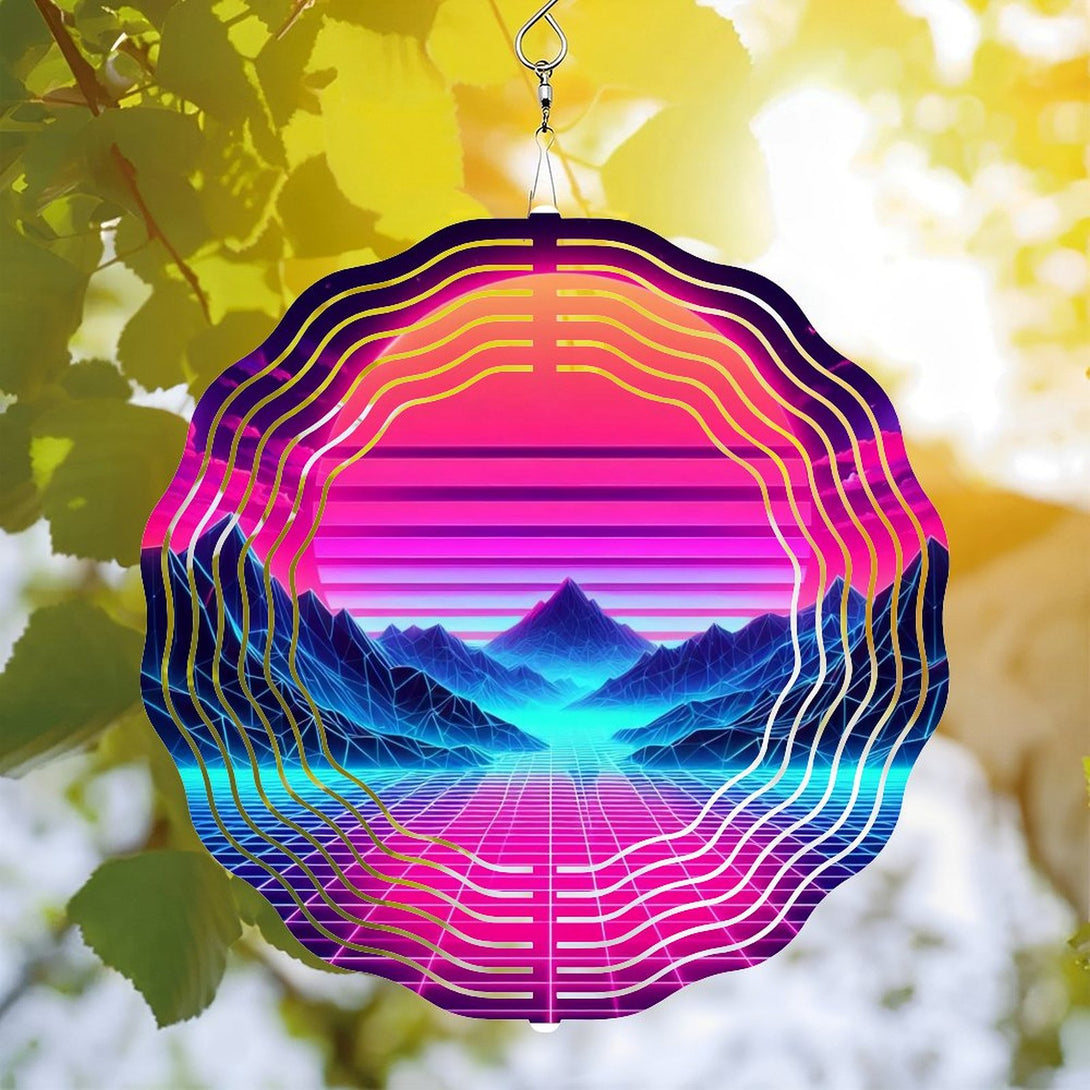 Funky Home Decor: Neon Vaporwave Sunset Wind Chimes , Retro 80s Synthwave Wall Art Wind Chimes for Housewarming Or Meditation Gift ,Abstract Futuristic Tempered Glass Wall Art - Home Wall Decor.