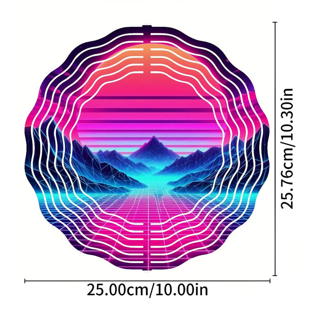 ,Neon Vaporwave Sunset Wind Chimes , Retro 80s Synthwave Wall Art Wind Chimes for Housewarming Or Meditation Gift ,Abstract Futuristic Tempered Glass Wall Art - Home Wall Decor.,10*10in(25*25cm)
