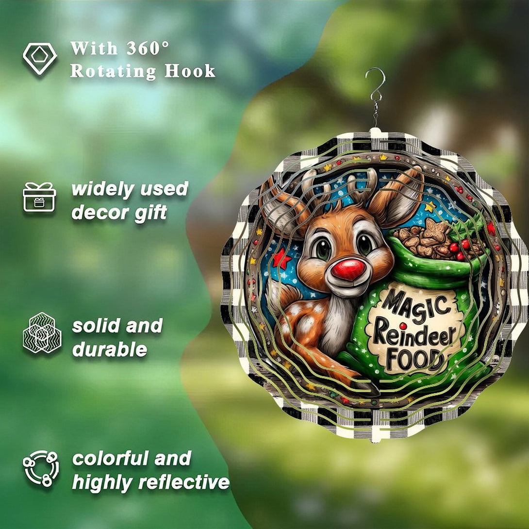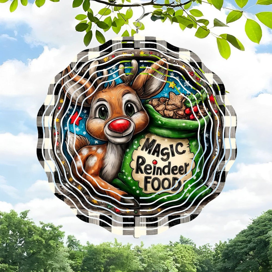 ,Reindeer with Red Nose with Bag of Magic Reindeer Food Wind Chime, Holiday Reindeer Decor Wind Chime for Homes, Bars, Offices, Man Caves, Garages, And Living Rooms .Also Makes A Great Gift.,10*10in(25*25cm)