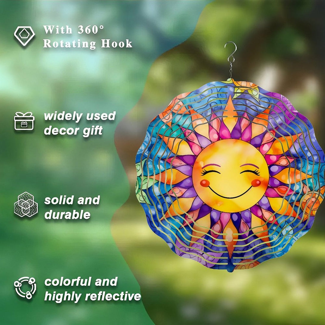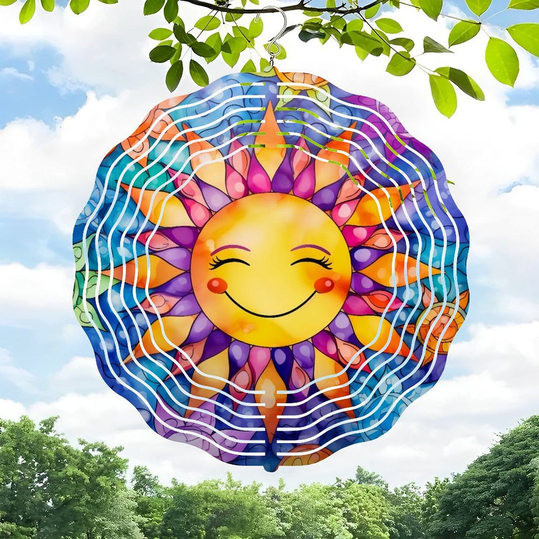 ,Smiling Sun Wind Chimes,round Summer Decor Wind Chimes for Homes, Bars, Offices, Man Caves, Garages, And Living Rooms .Also Makes A Great Gift.,10*10in(25*25cm)