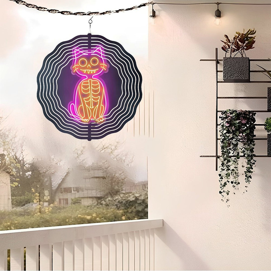 ,Spooky Skeleton Cat Wind Chime– Fun Kitten Hallo-ween Wind Chime for Home Decor Wedding Gift Decor. Man Cave Hanging Door Housewarming Hall-oween Gift,10*10in(25*25cm)