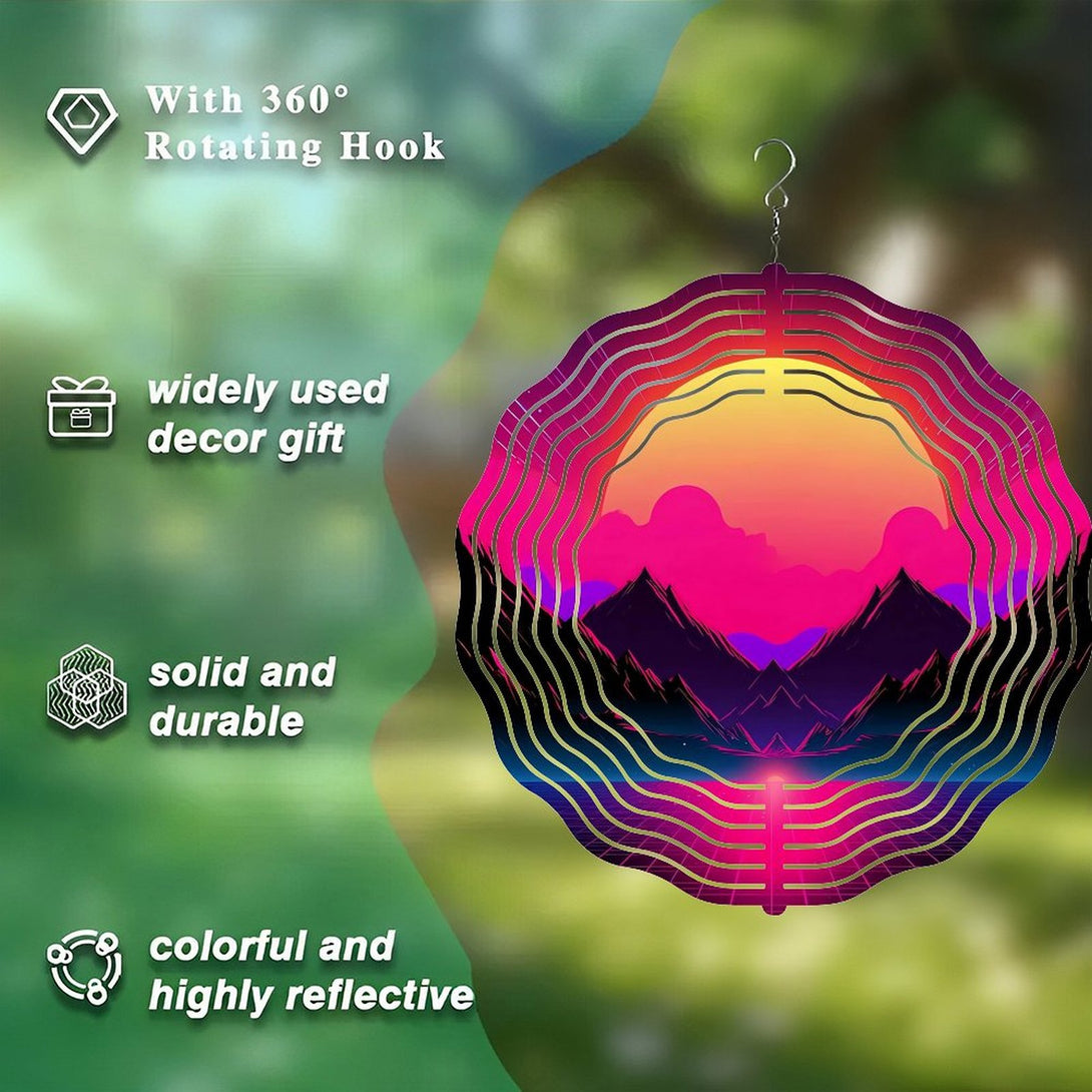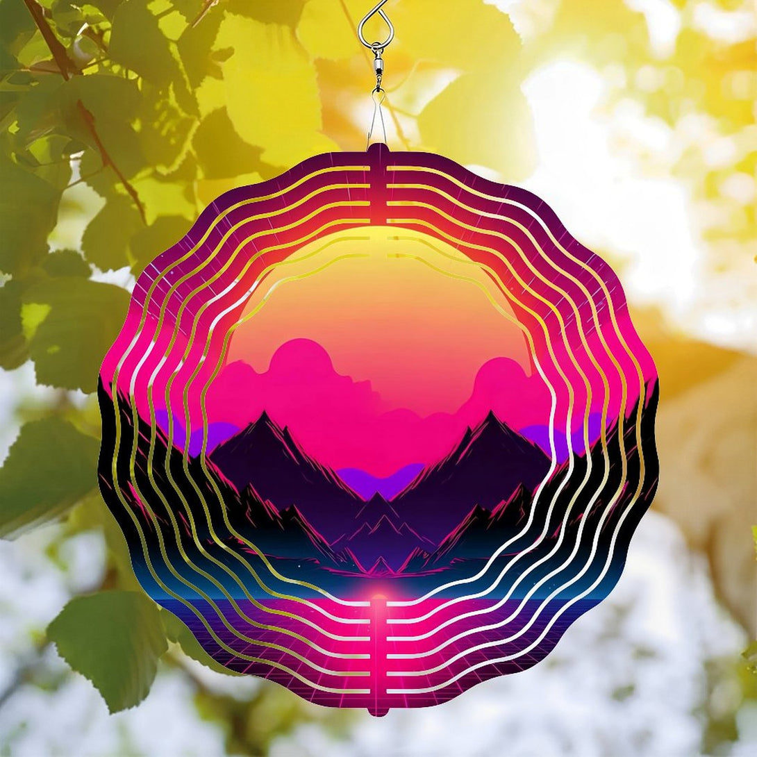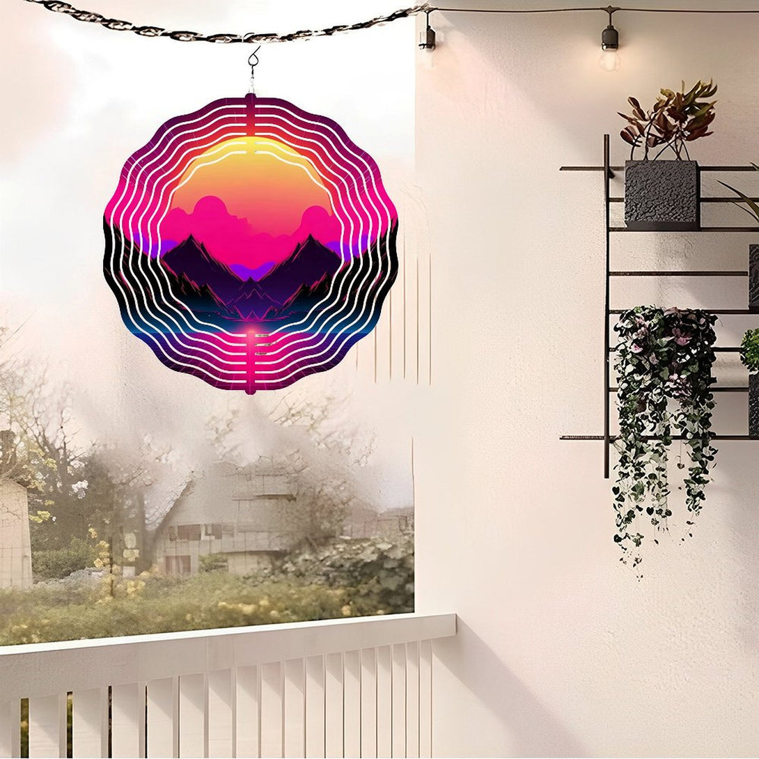 ,Sunset Print Retrowave Wall Art Wind Chimes, 80's Nostalgia Decor Cyber Punk Wind Chimes for Homes, Bars, Offices, Man Caves, Garages, And Living Rooms .Also Makes A Great Gift.,10*10in(25*25cm)