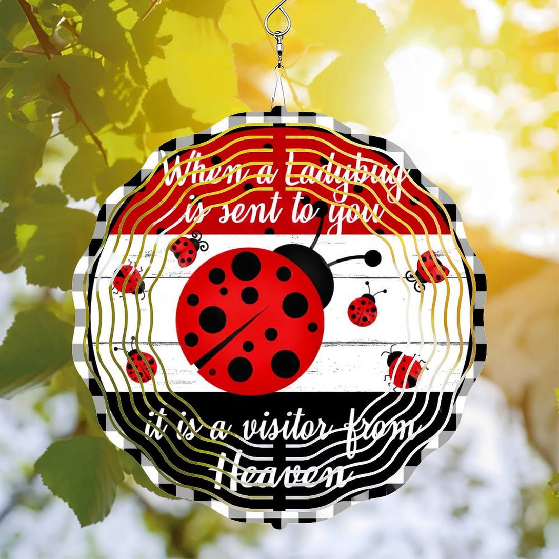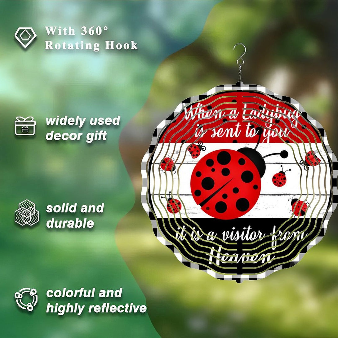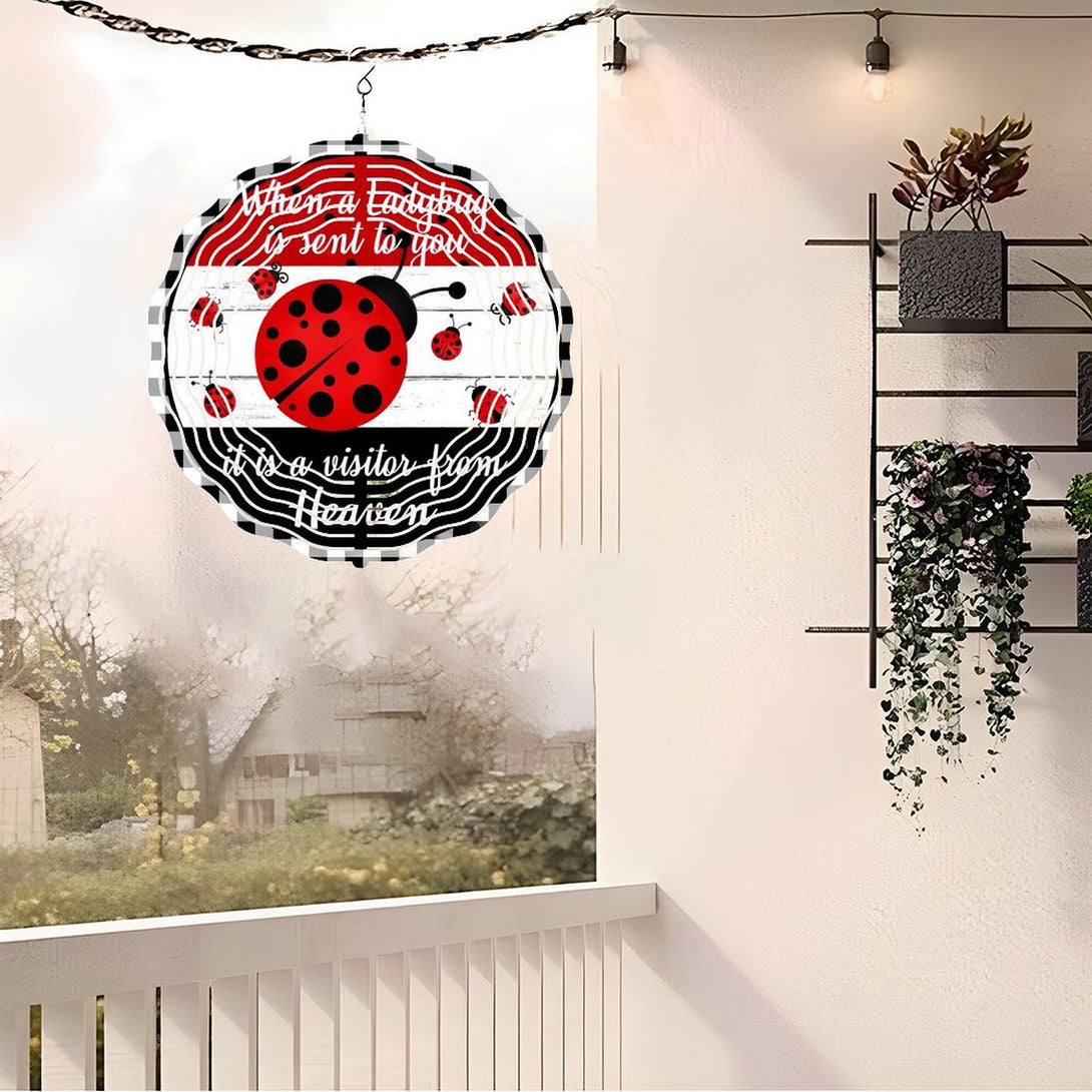 ,When A Ladybug Is Sent to You It's A Visitor from Heaven Wreath Wind Chimes for Homes, Bars, Offices, Man Caves, Garages, And Living Rooms. Also Makes A Great Gift.,10*10in(25*25cm)