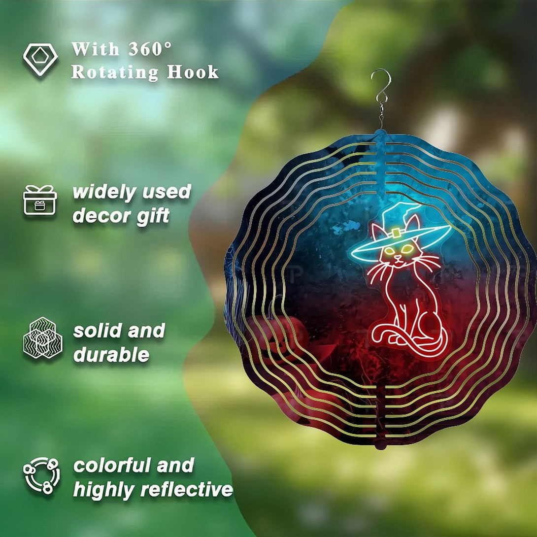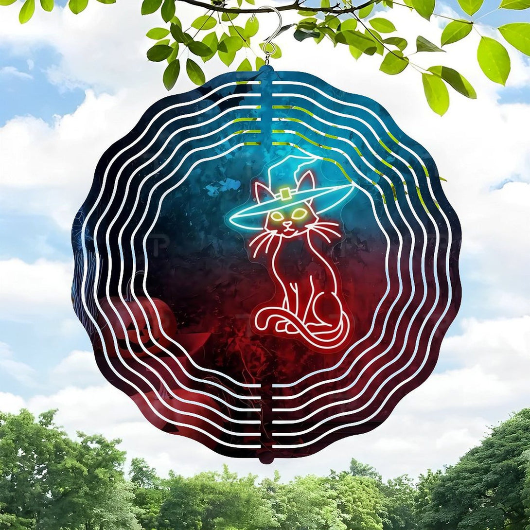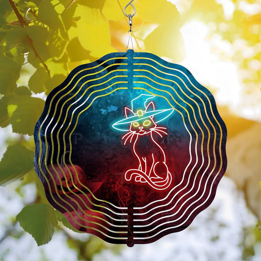 ,Witch Cat Hallo-ween Wind Chime ,Spooky Black Cat Decor Wind Chime for Homes, Bars, Offices, Man Caves, Garages, And Living Rooms. Kids Room Decor, Haunted House Party Room Or Gothic Aesthetic,10*10in(25*25cm)