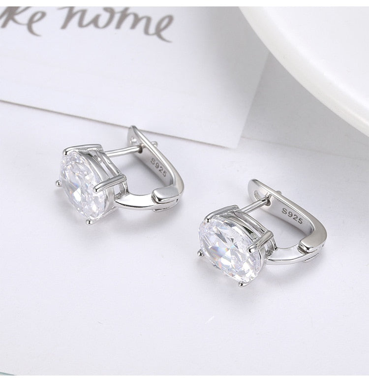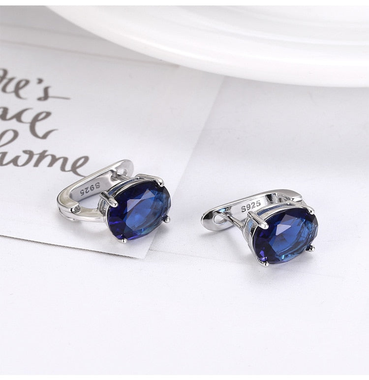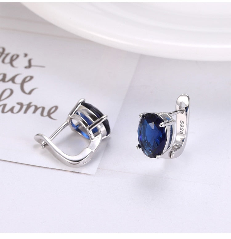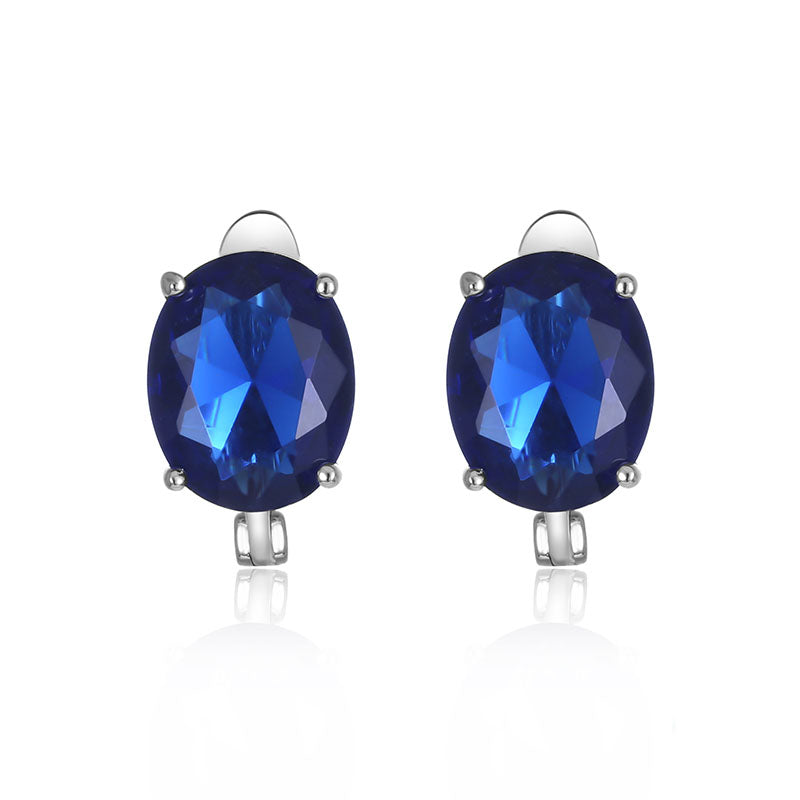 Fashion Earrings- Gemstone Sapphire Clip Earrings Women's Fashion Kpop Silver 925 Jewelry Blue/White Lab Diamond Wedding Elegan earrings