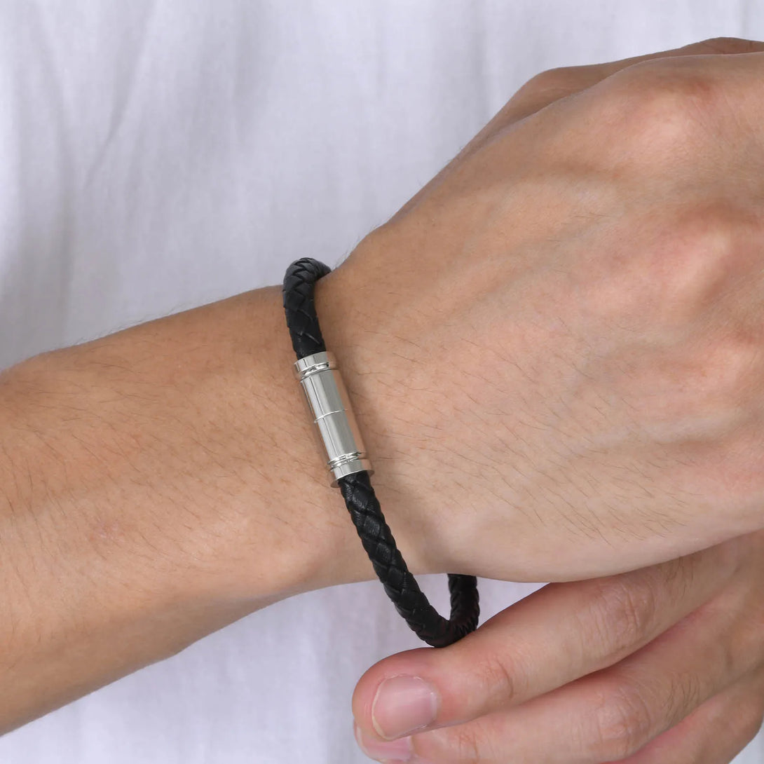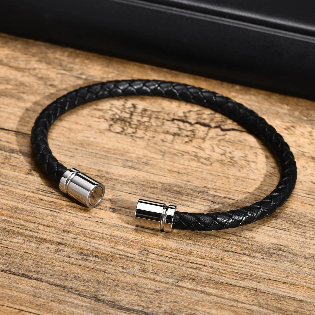Genuine Leather Bracelet for Men Woven Wristband cuffs With Stainless Steel Magnetic Buckle Trendy Handsome Boy Simple Gift