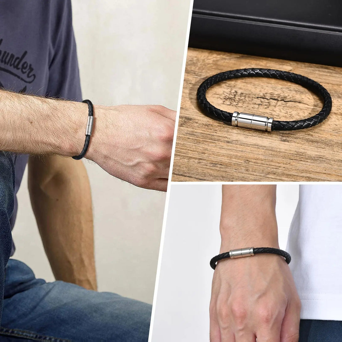Genuine Leather Bracelet for Men Woven Wristband cuffs With Stainless Steel Magnetic Buckle