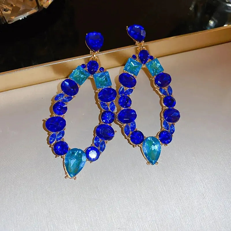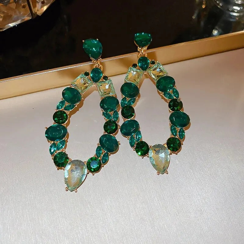 Geometric Drop Earrings Fo Women Europe and United States Exaggerated Rhinestone Dangele Earring Niche Personality Retro Jewelry