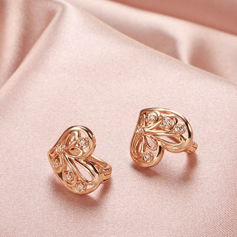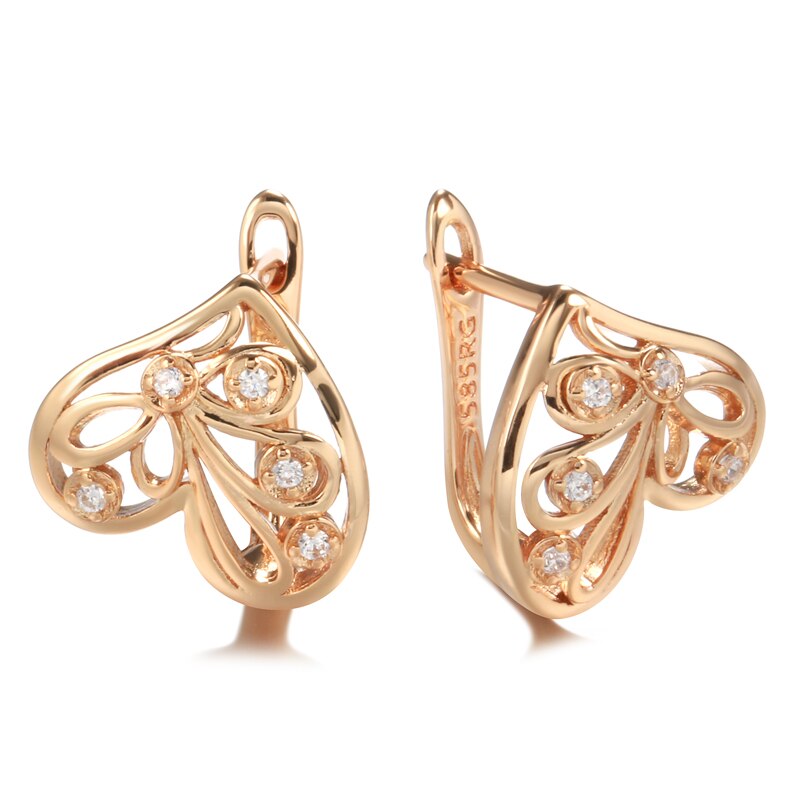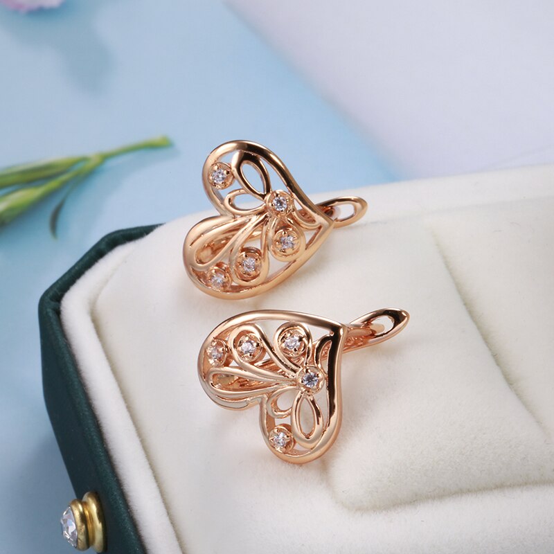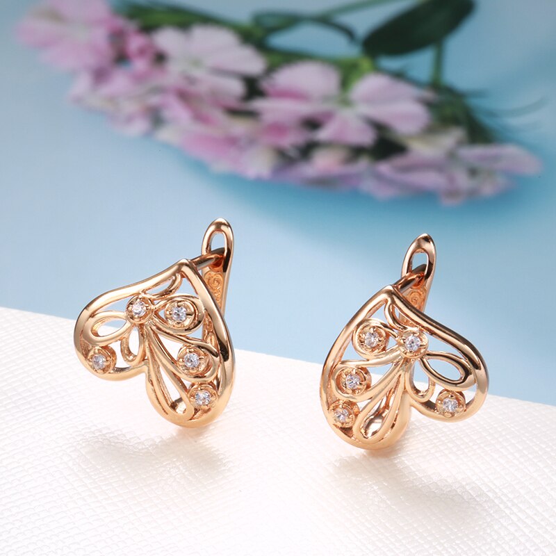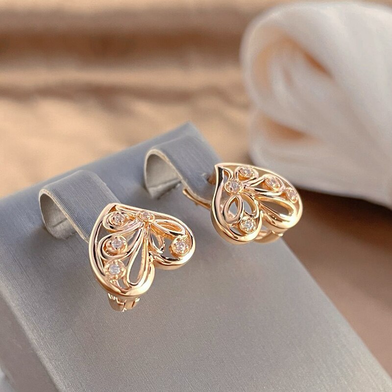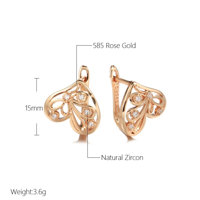 585 Gold Jewelry-Geometric Hollow Heart Design English Lock Earrings For Women 585 Rose Gold Smooth Metal Earrings Fashion Personality Jewelry