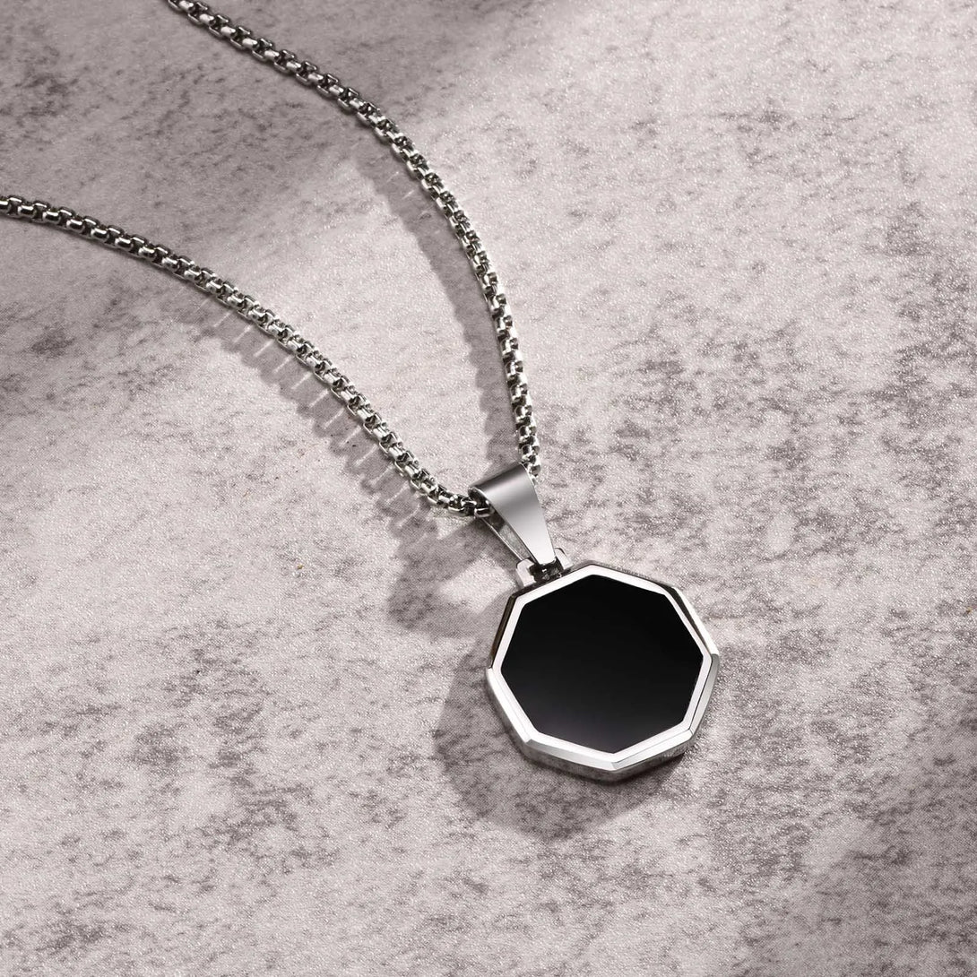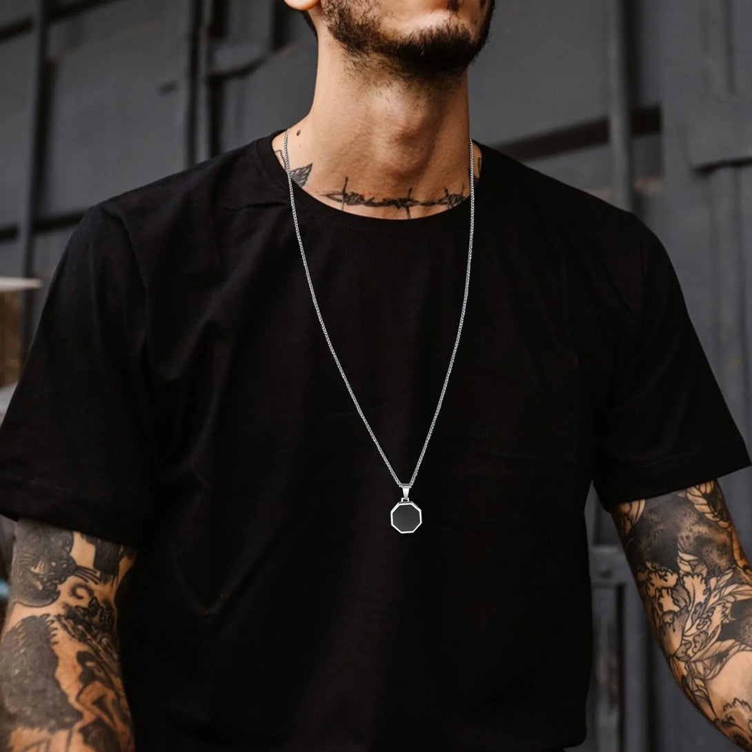 Geometric Necklaces for Men, Waterproof Stainless Steel Octagon Pendant Collar, Casual Gifts for Him Jewelry