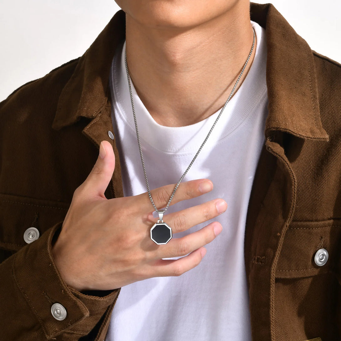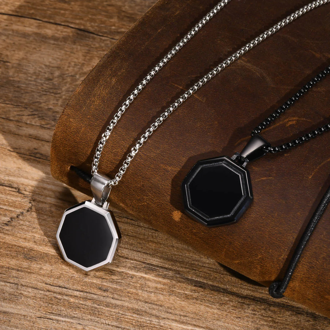 Geometric Necklaces for Men, Waterproof Stainless Steel Octagon Pendant Collar