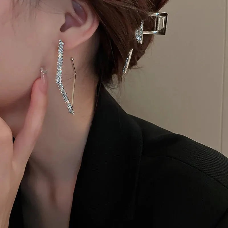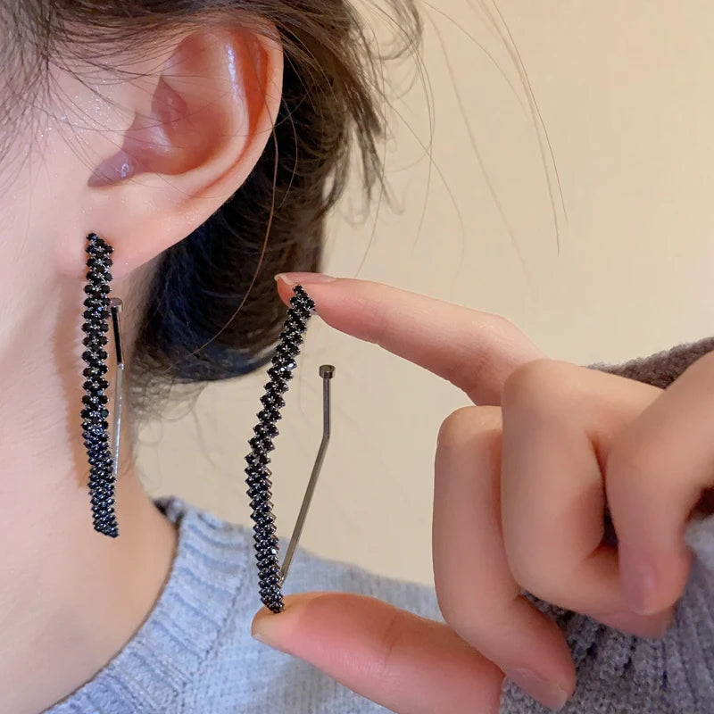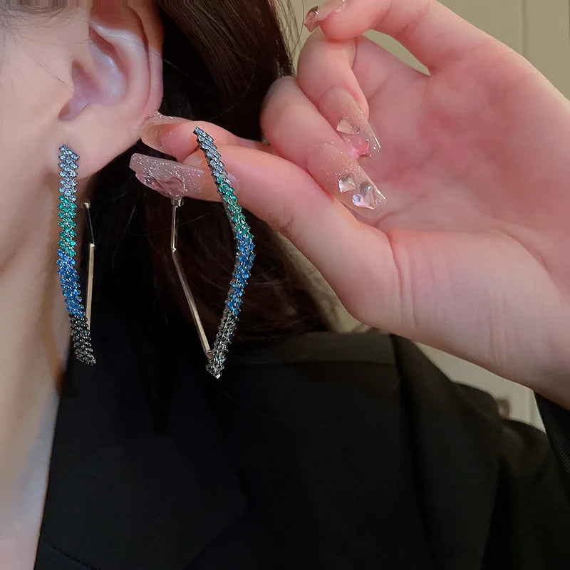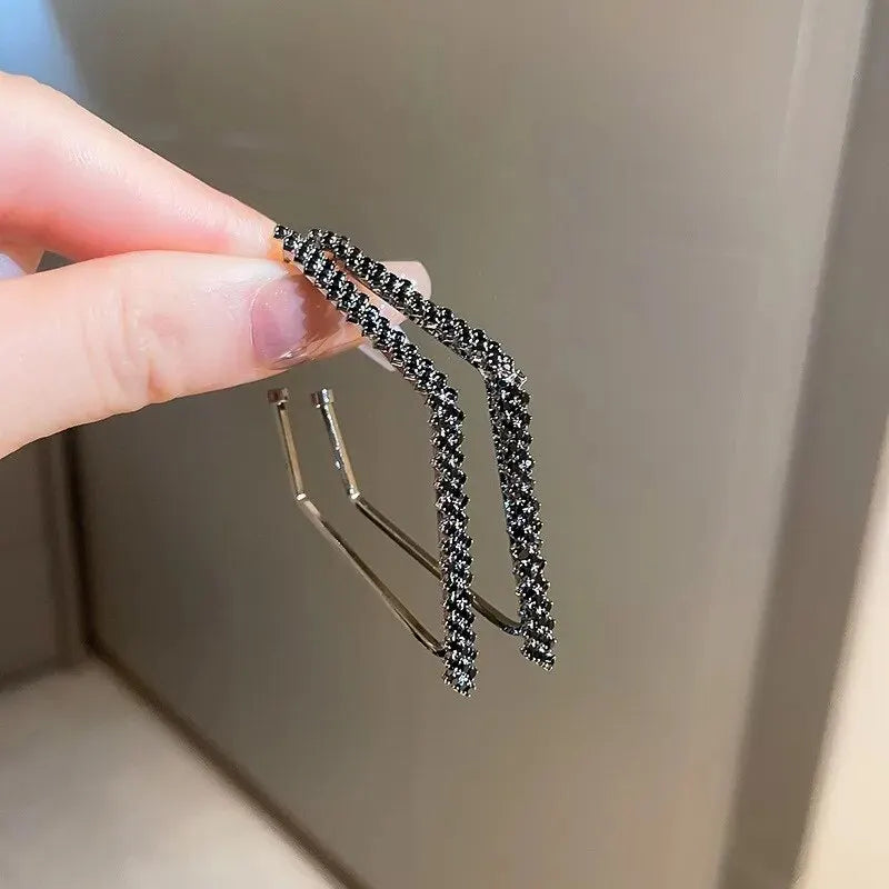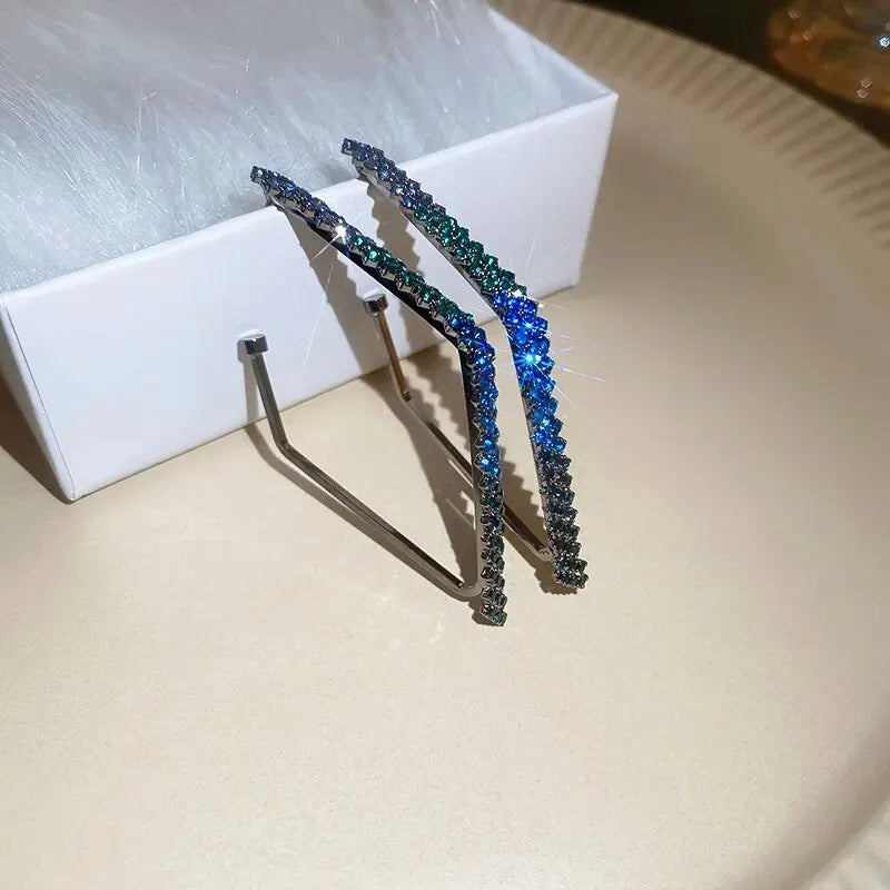 Geometric Rhinestone Earrings for Women Fashion Square Sparkle Hoop Earrings All-match Statement Jewelry for Party