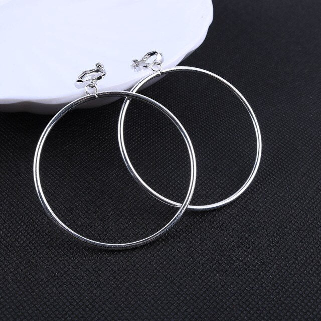 Fashion Earrings-Geometric Round Clip Earrings Metal Simple Big Earrings Without Piercing Women Earring Ear Clip Jewelry