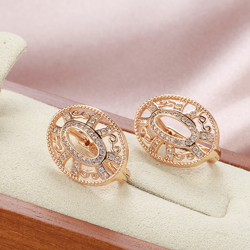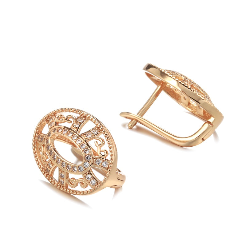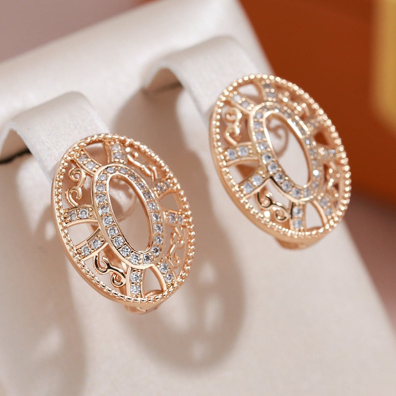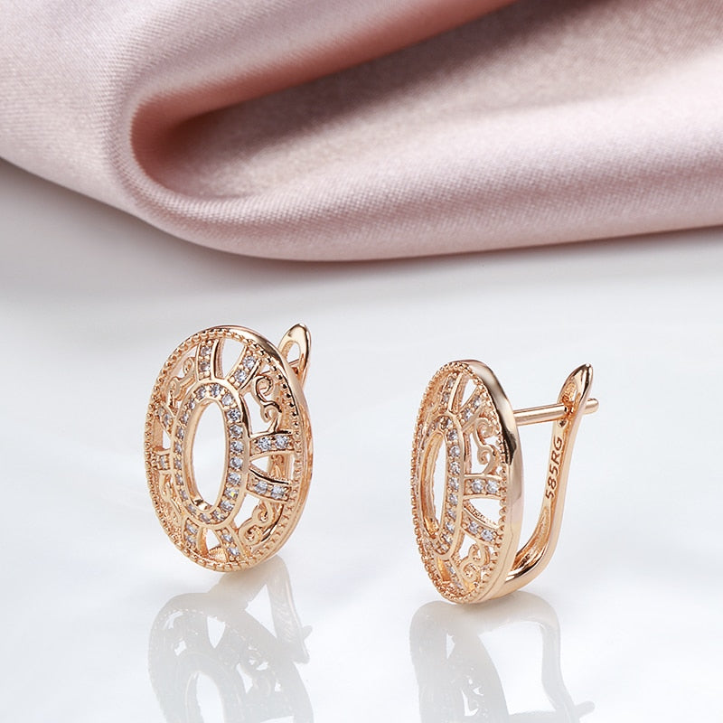 585 Gold Jewelry-Geometric Texture Smooth Double Layer Round Drop Earrings Gold Color Vintage Women Jewelry Elegant Dangle Accessories