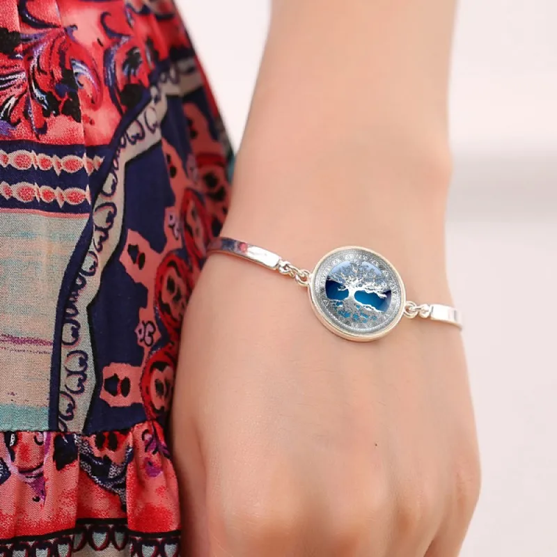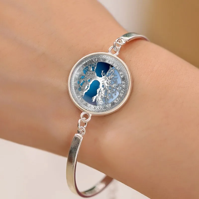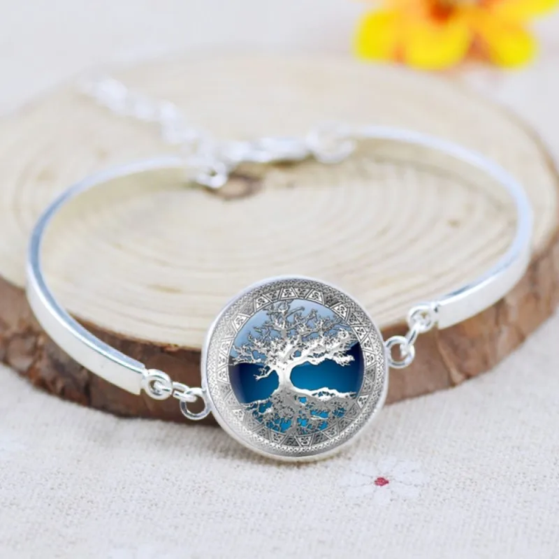 4 Pcs/Set Glass Cabochon Necklace Earrings Bangle Life Of Tree Art Picture Pendant Statement Chain For Women Jewelry