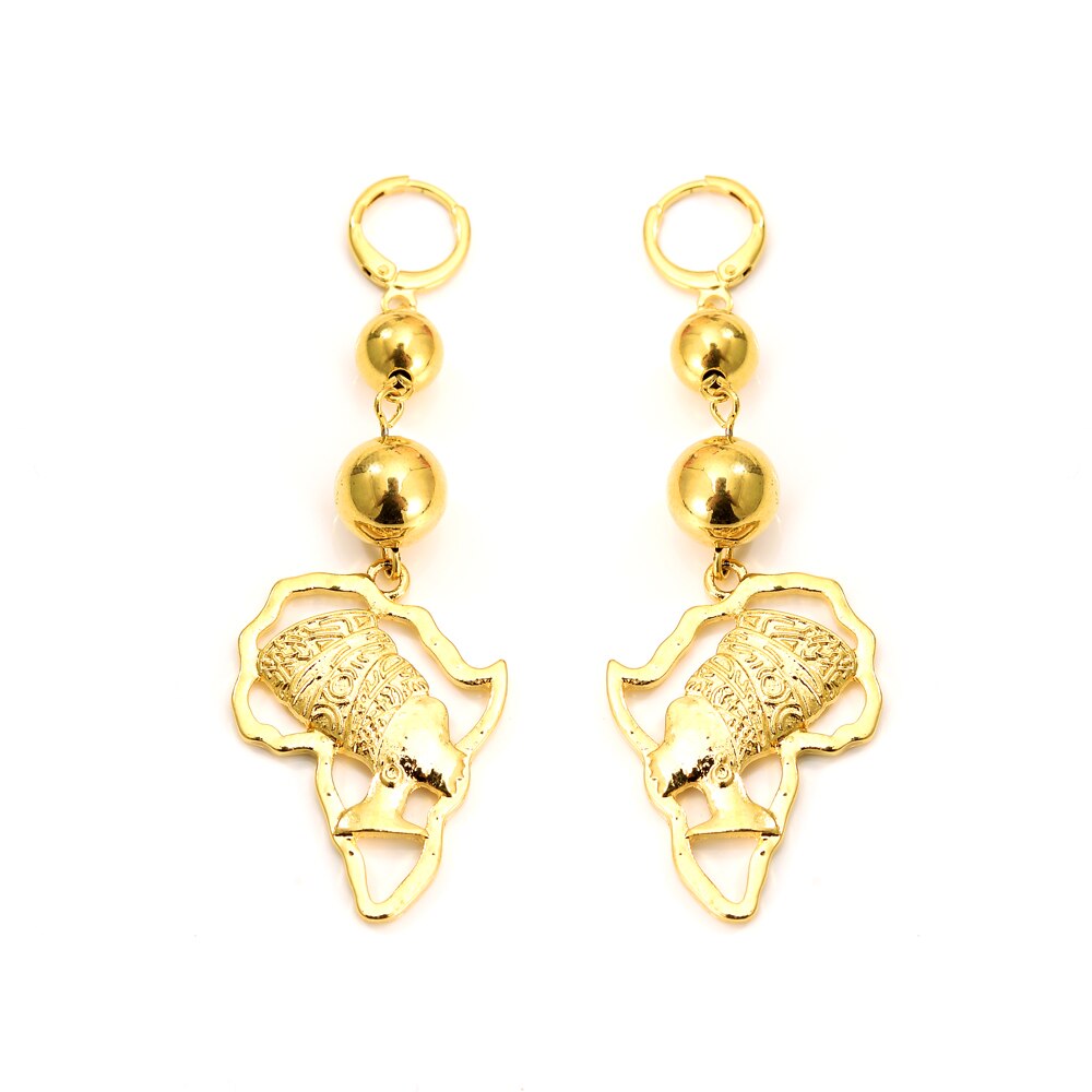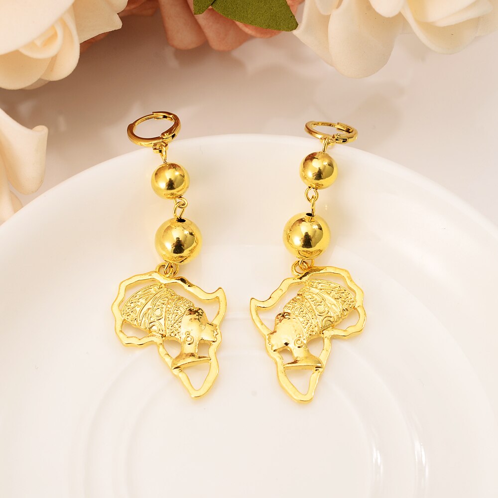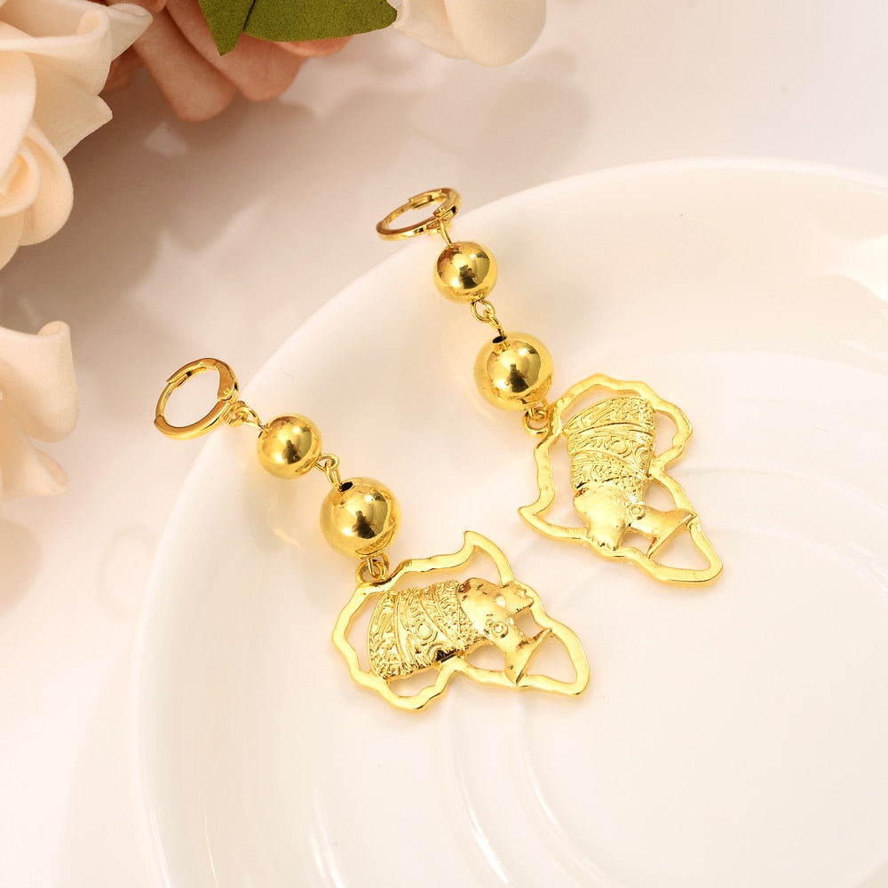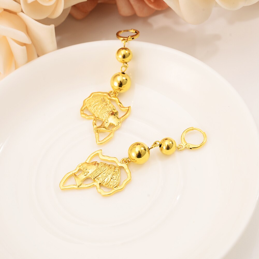 Afraic Jewelry-24k Gold Africa map women beads Earrings Women/Girl Trendy Jewelry for African/Arab/Middle Eastern best gift wedding bridal earrings
