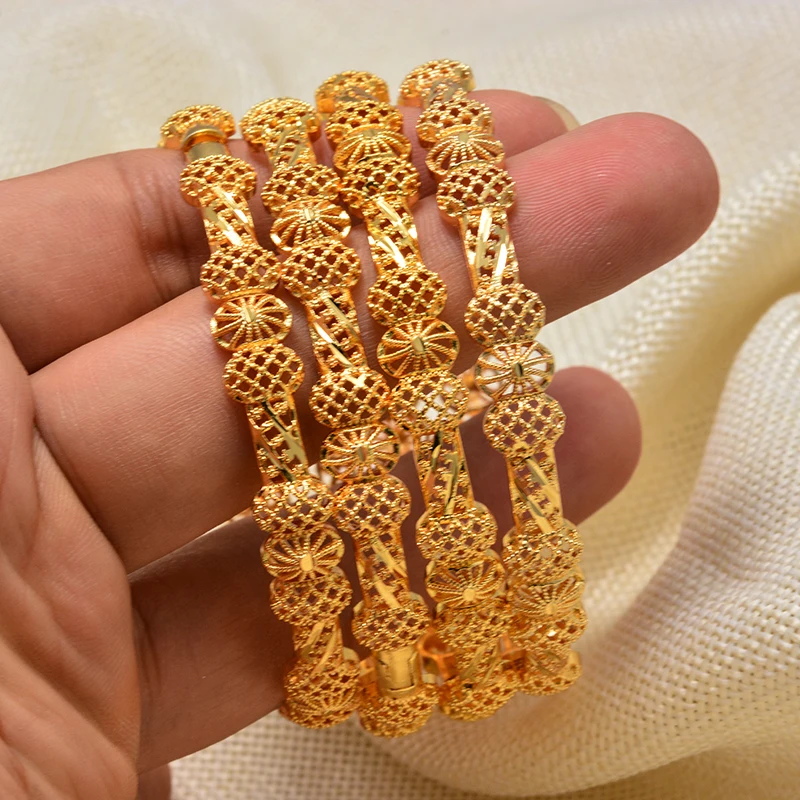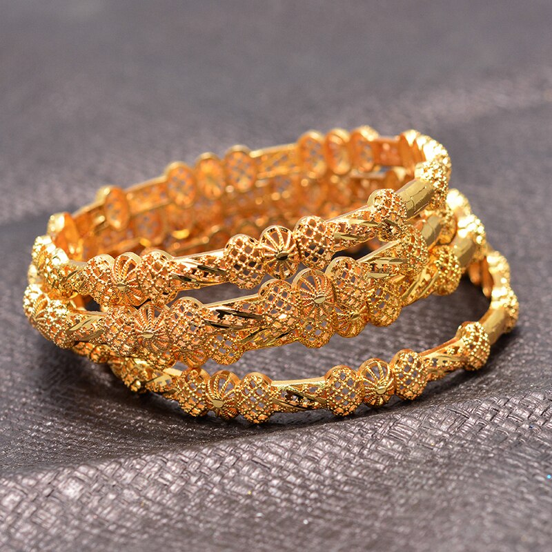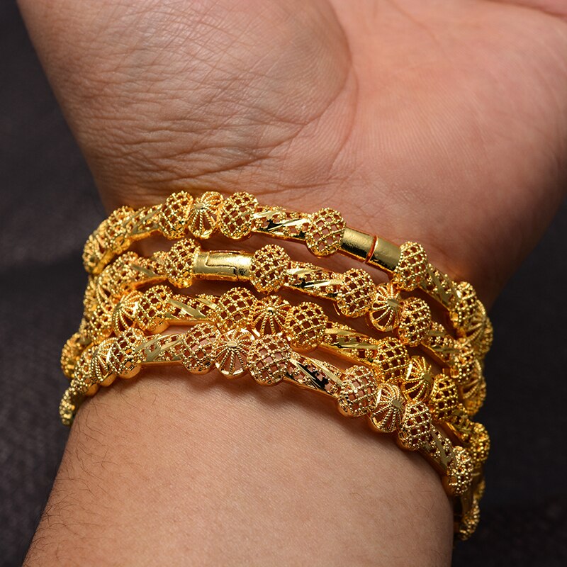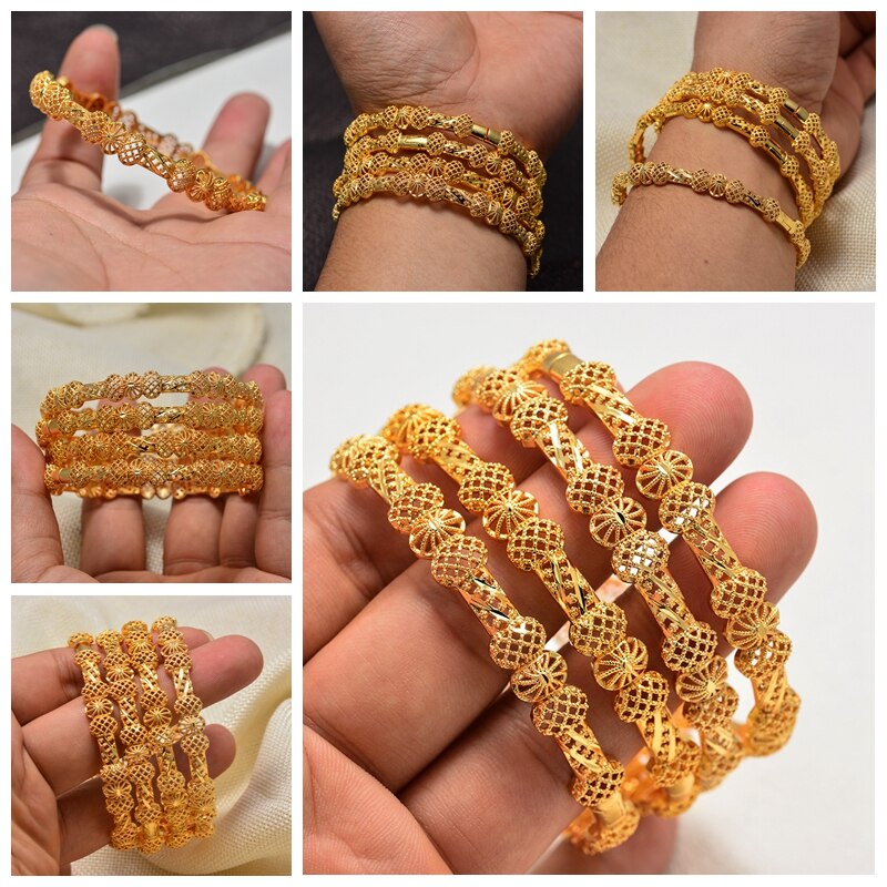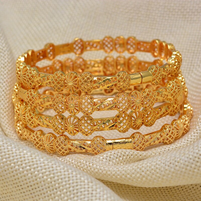 Afraic Jewelry- Nigeri/Africa/Dubai/Ethiopian Jewelry Gold Color 4pcs Bangles&Bracelet for Women Girl Wedding Birthday Gifts