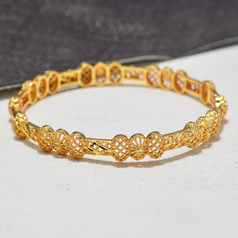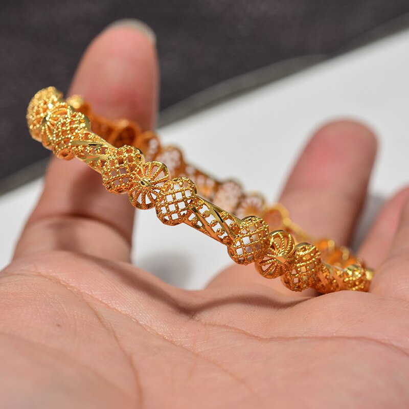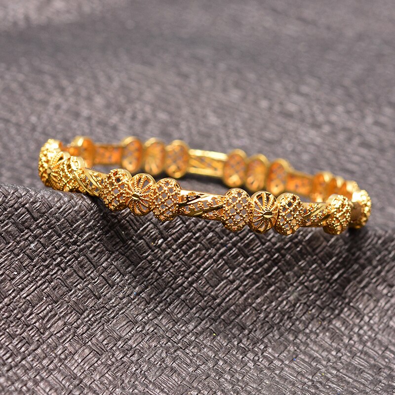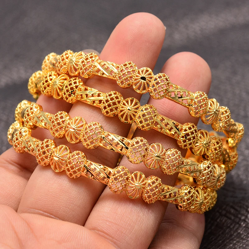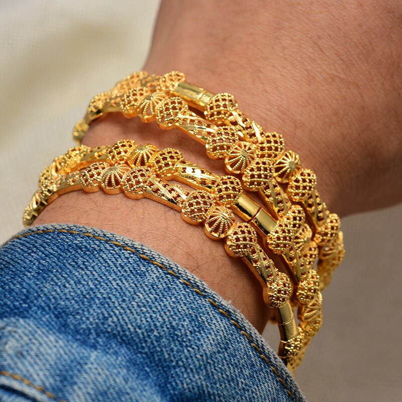 Afraic Jewelry- Nigeri/Africa/Dubai/Ethiopian Jewelry Gold Color 4pcs Bangles&Bracelet for Women Girl Wedding Birthday Gifts