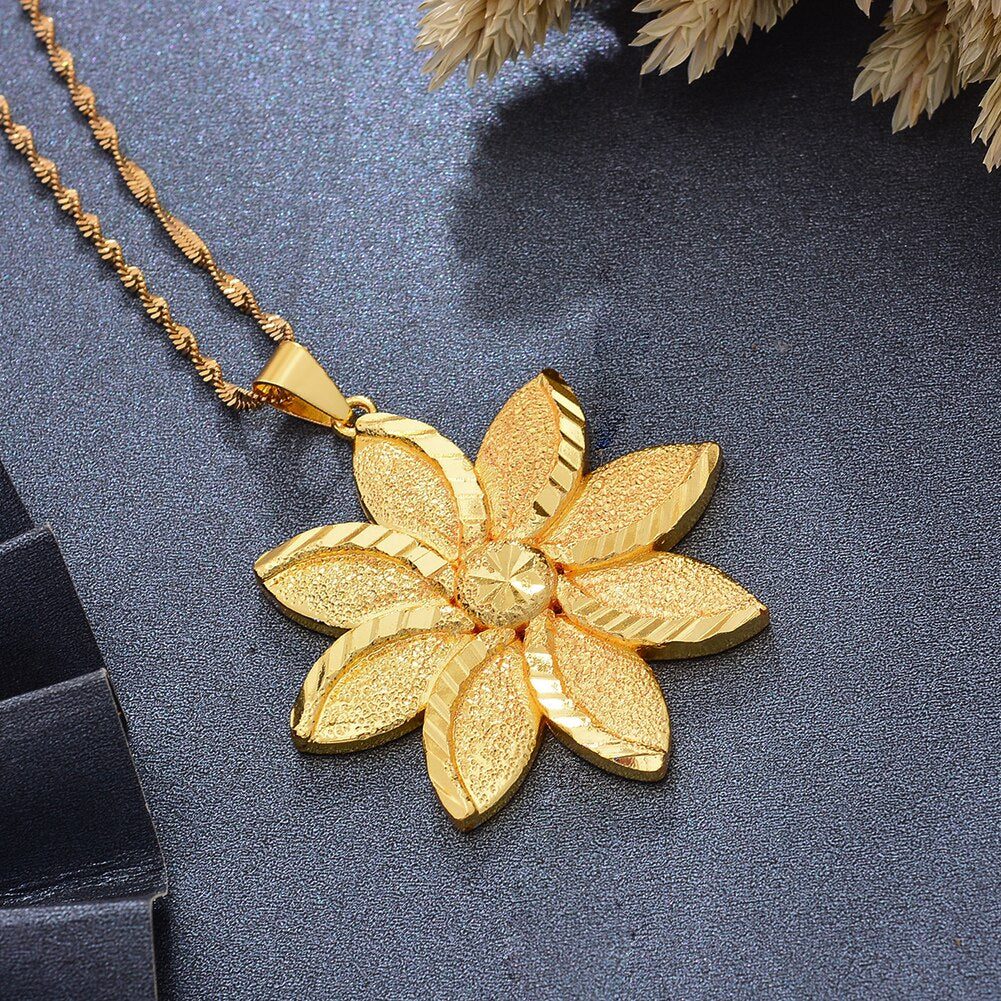 Afraic Jewelry -Gold Color Africa Birthday Party Party Dubai Leaf Pendant Heart Chain Necklaces Wife Jewelry For Women Men