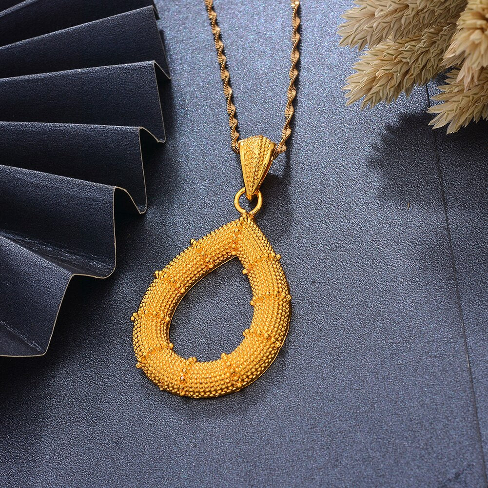 Afraic Jewelry- Gold Color Africa Birthday Party Party Dubai Pendant Heart Chain Necklaces Wife Jewelry For Women Men