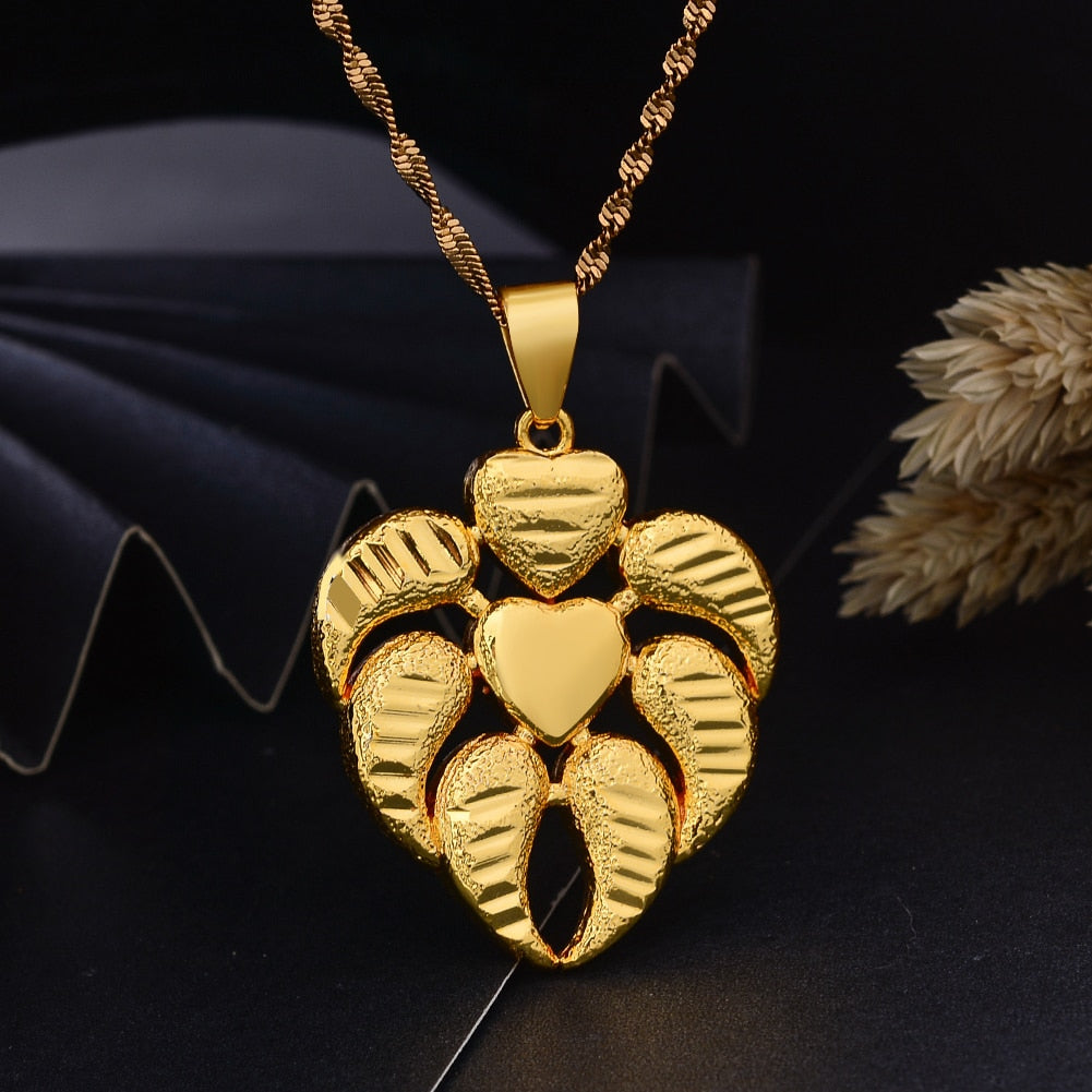 Afraic Jewelry -Gold Color Africa Birthday Party Party Dubai Pendant Heart Chain Necklaces Wife Jewelry For Women Men