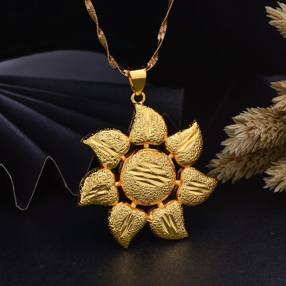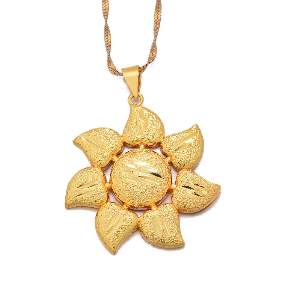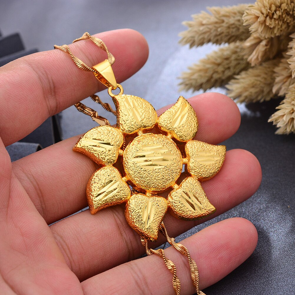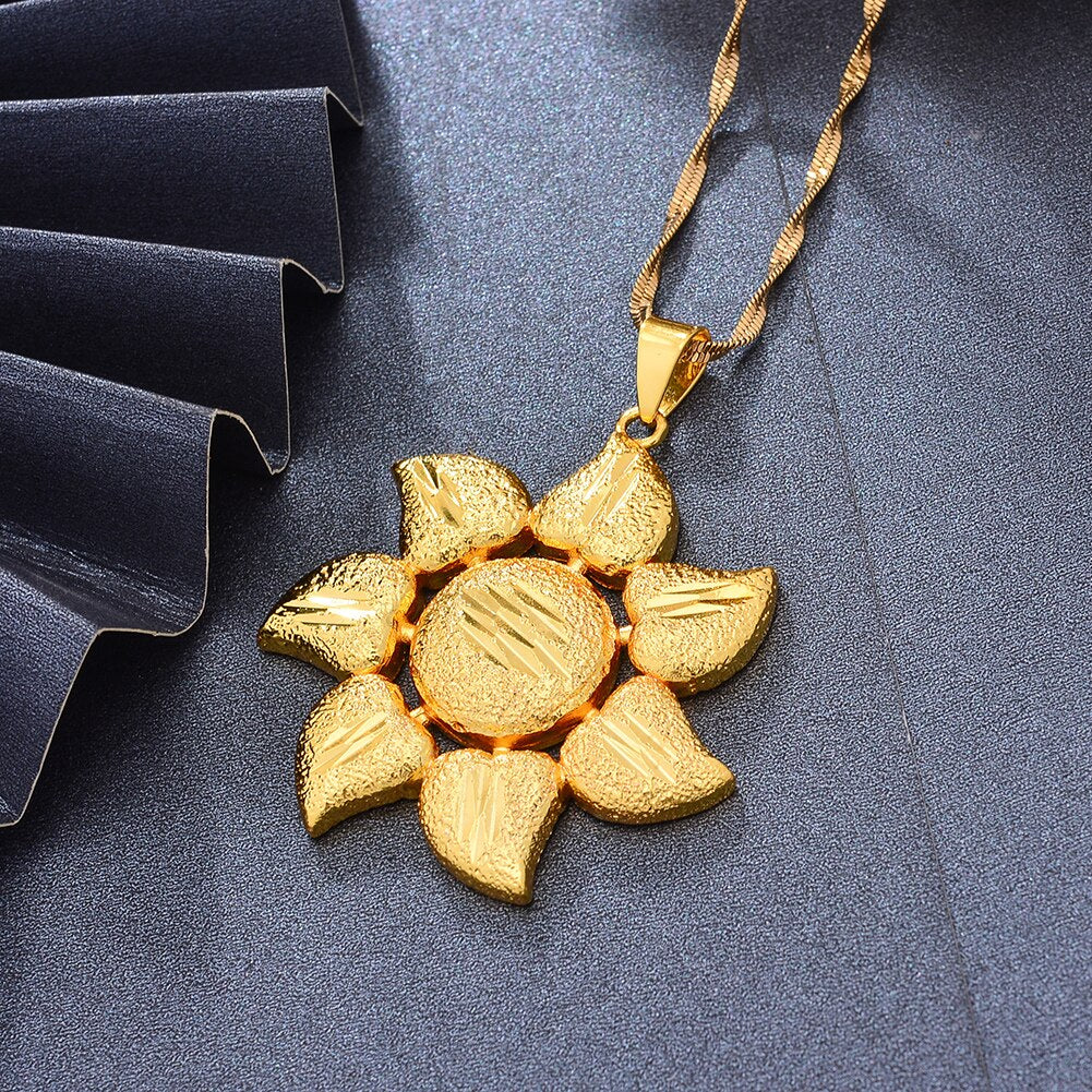 Afraic Jewelry -Gold Color Africa Birthday Party Party Dubai Sun Flower Pendant Heart Chain Necklaces Wife Jewelry For Women Men