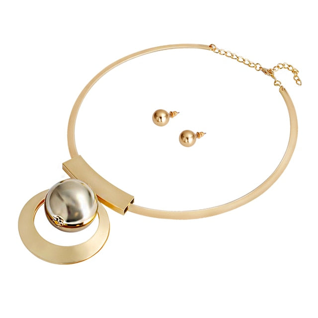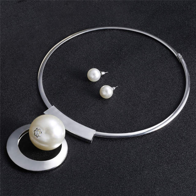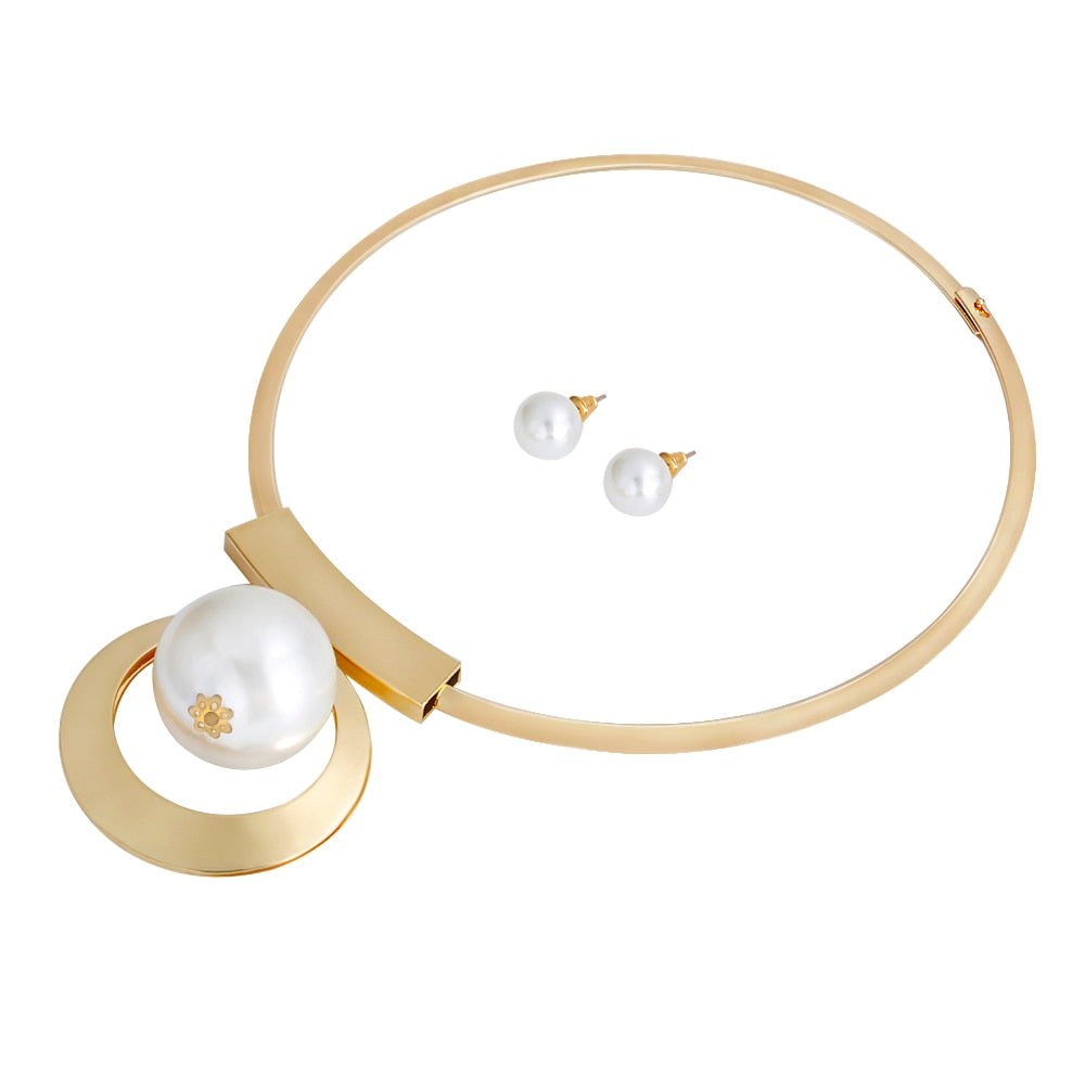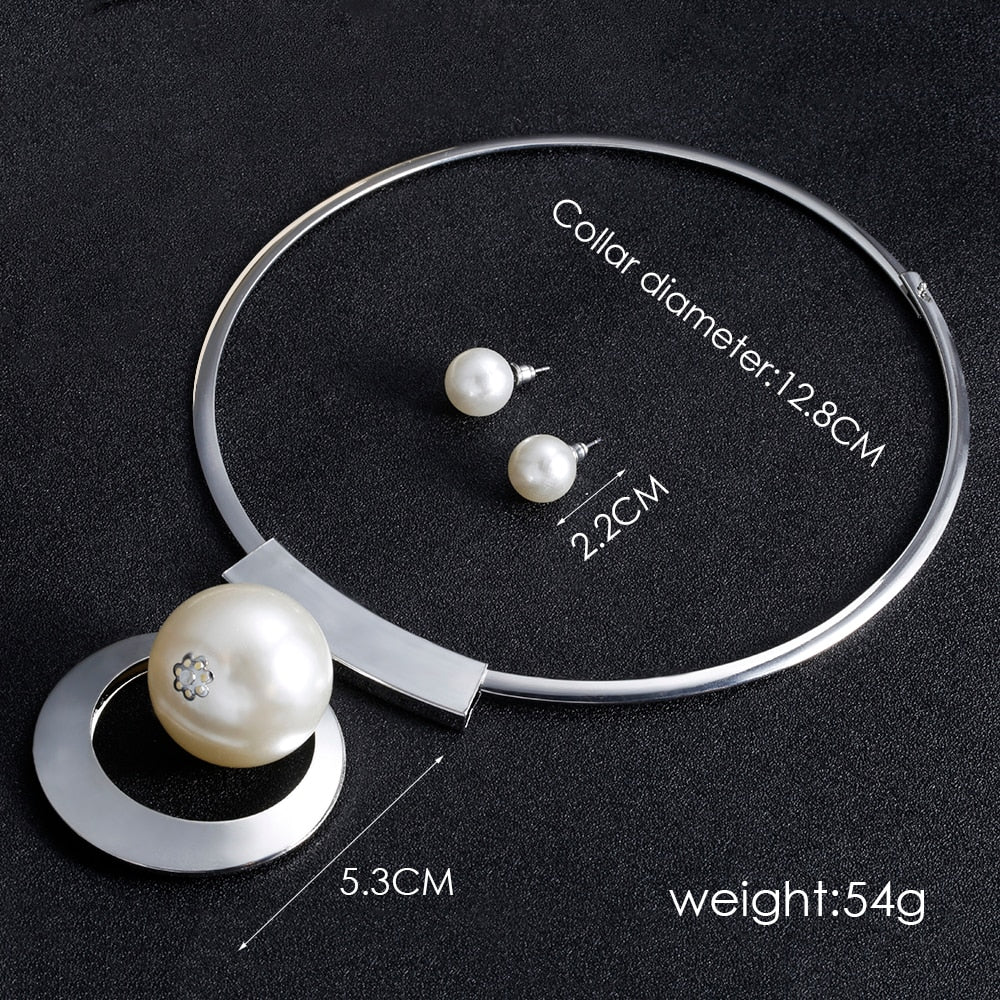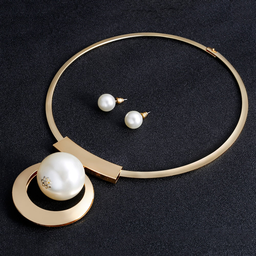 Bohemia Imitation Pearl Jewelry Sets Gold Color Big Beads Choker Necklace Earrings African Women Wedding Party Gifts