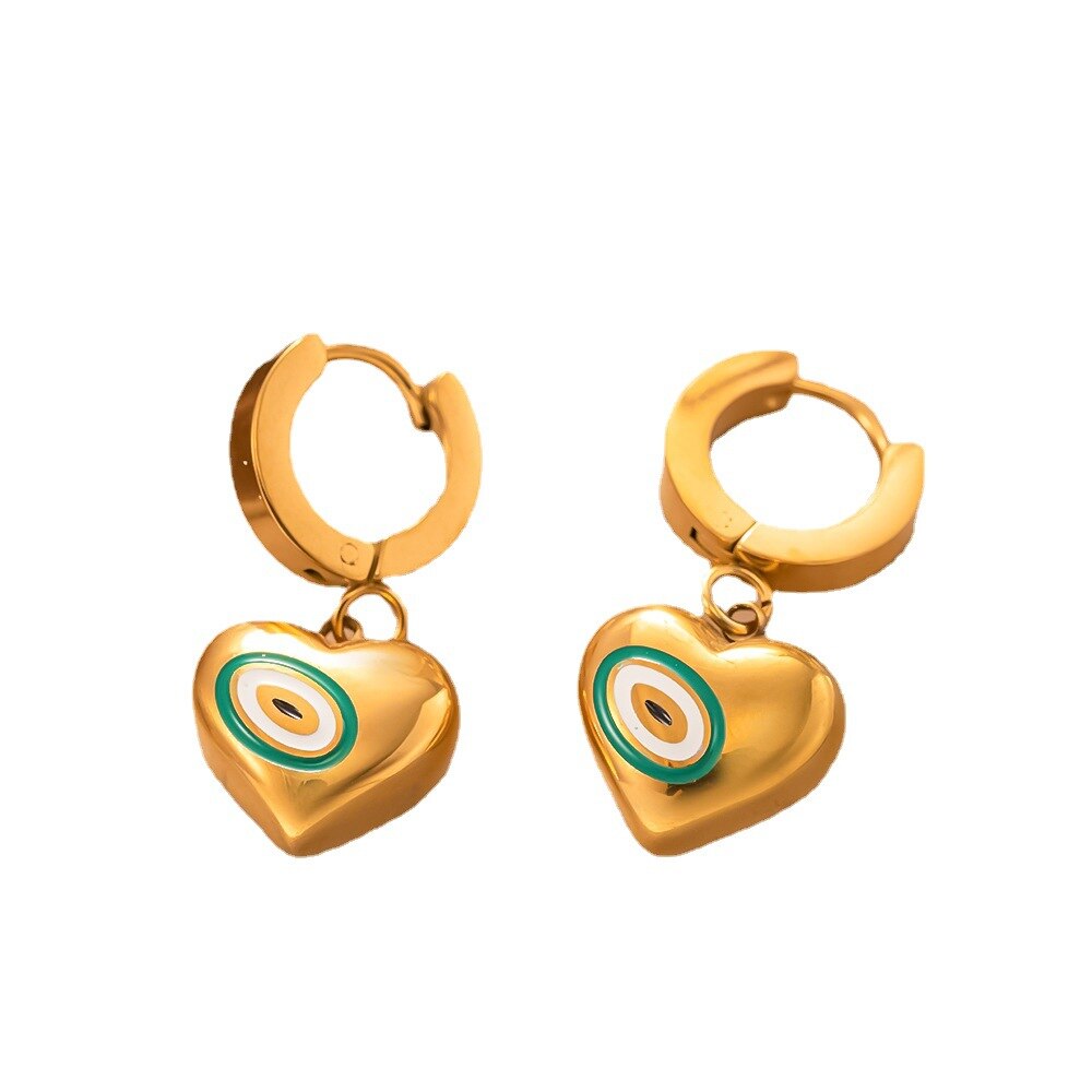 Gold Color Bohemian Vinatge Heart Evil Eye Pendant Necklace Earrings For Women